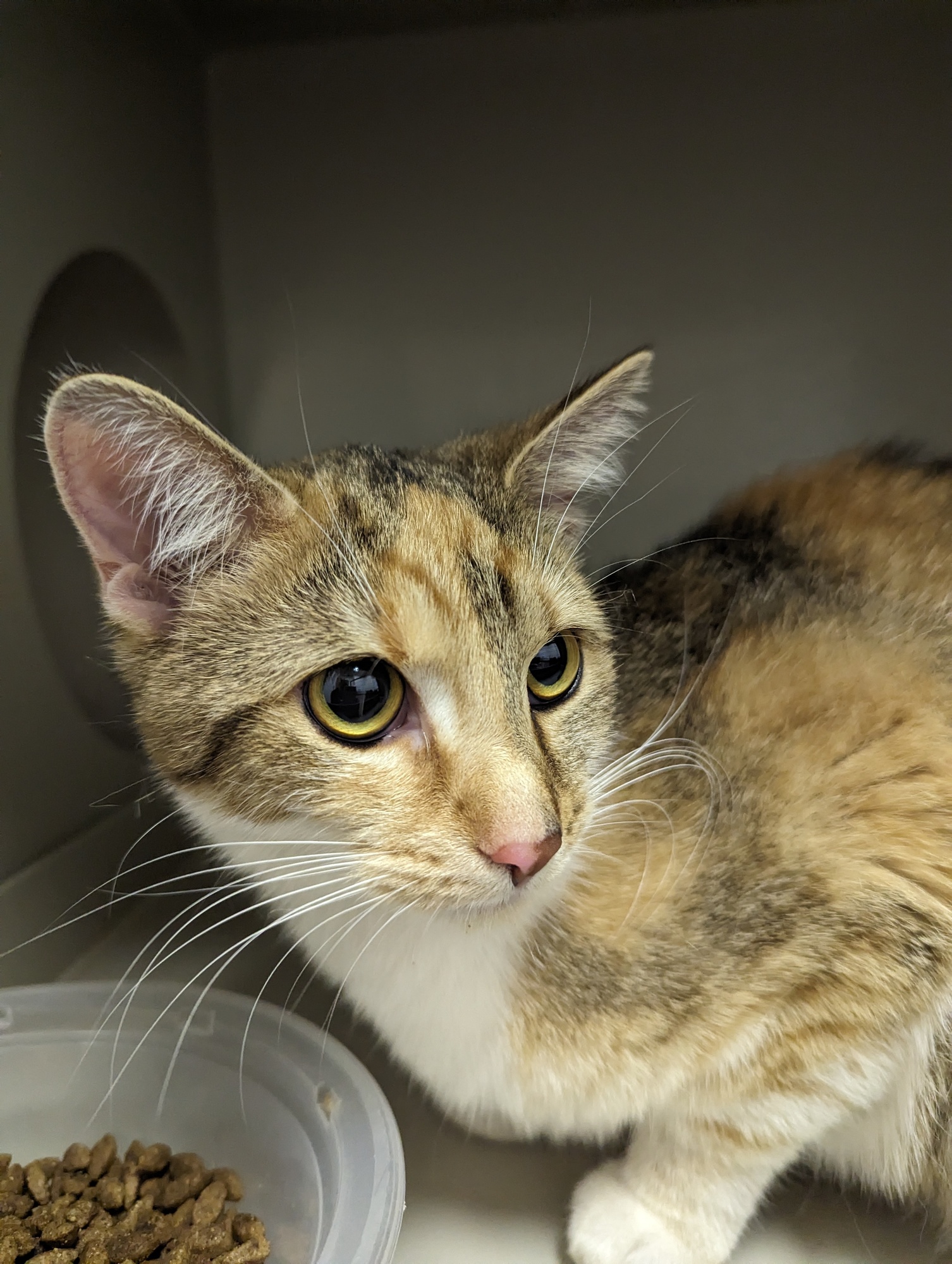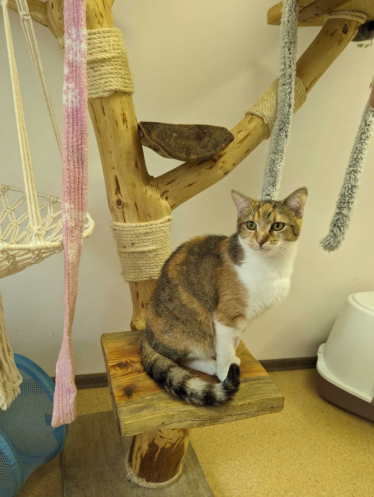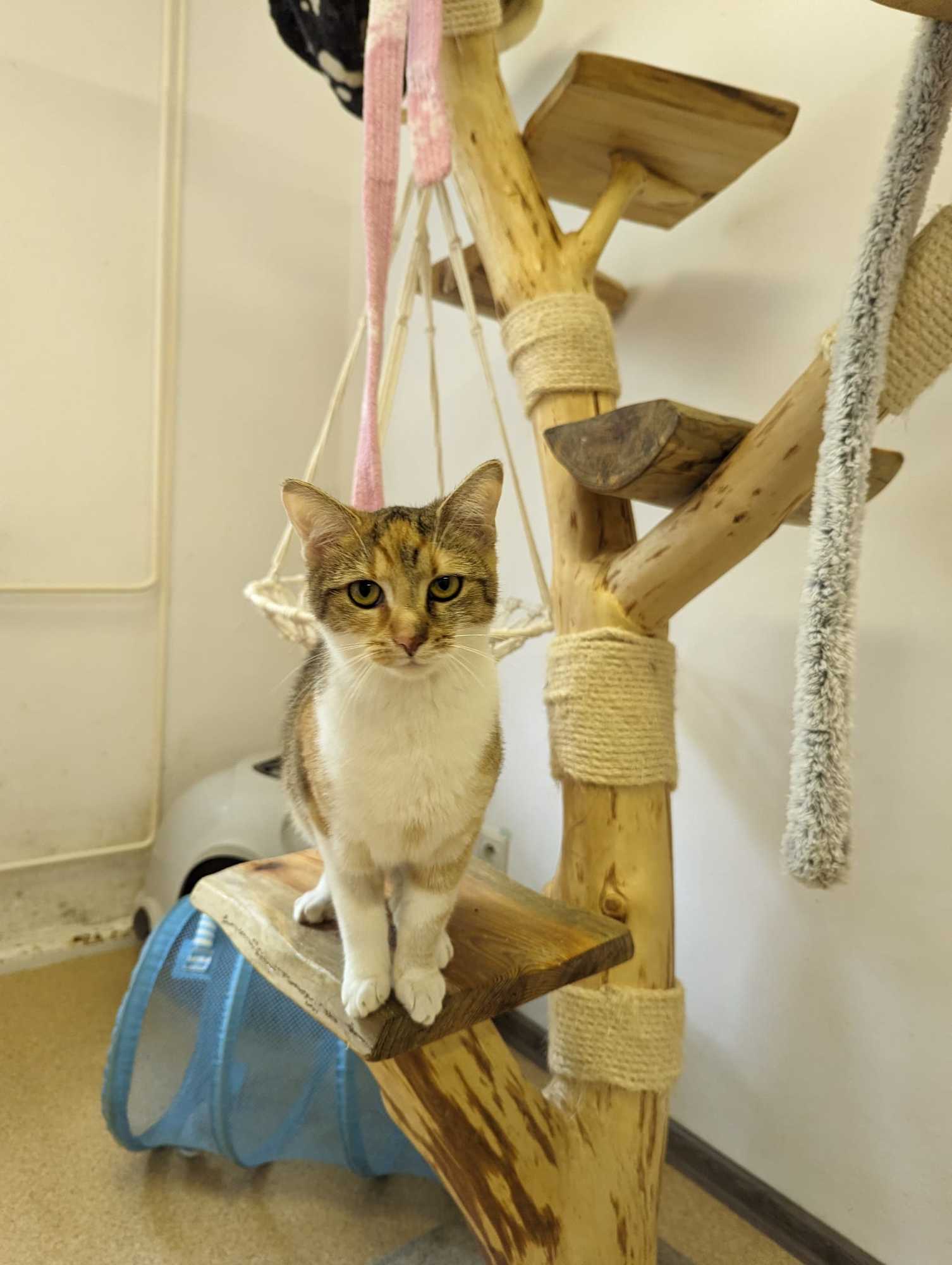 Pampeliška je na sebe zprvu trošku opatrná, ale po chvíli se mazlí. V původním domově byla čistě bytová kočka, není zvyklá chodit ven. Je zvyklá na děti a jiné kočičky, pokud by mohla jít do nového domova s Prašivkou, se kterou k nám i přišla, bylo by to pro ní skvělé, ale není to podmínkou. Společnost jiné kočky však uvítá.