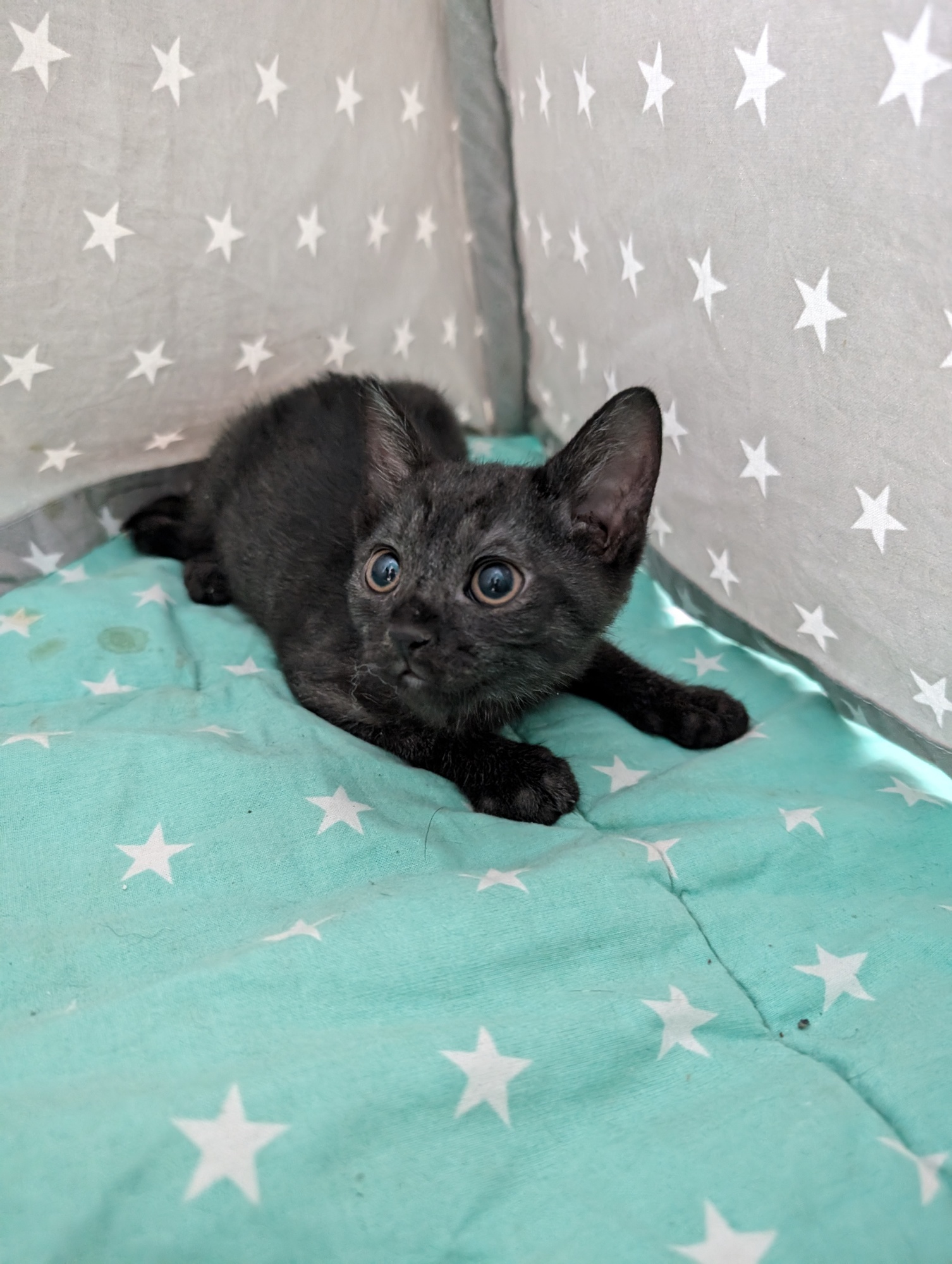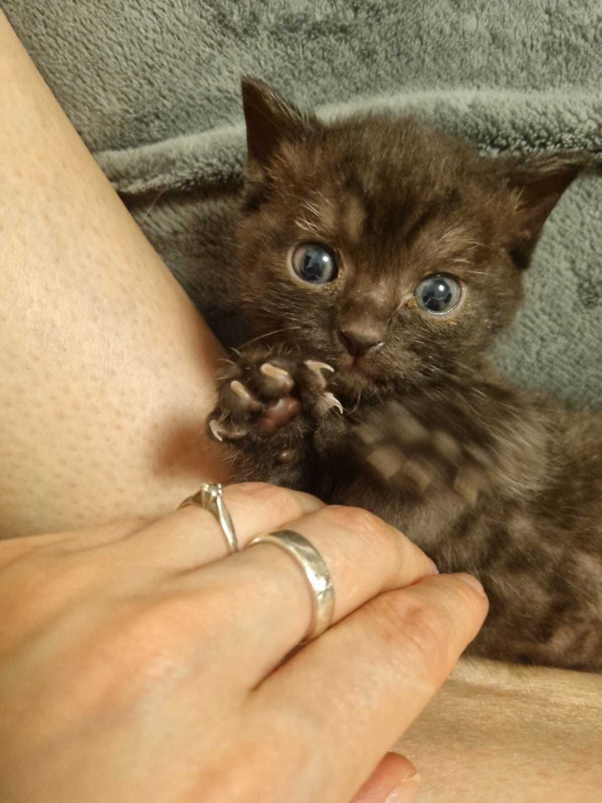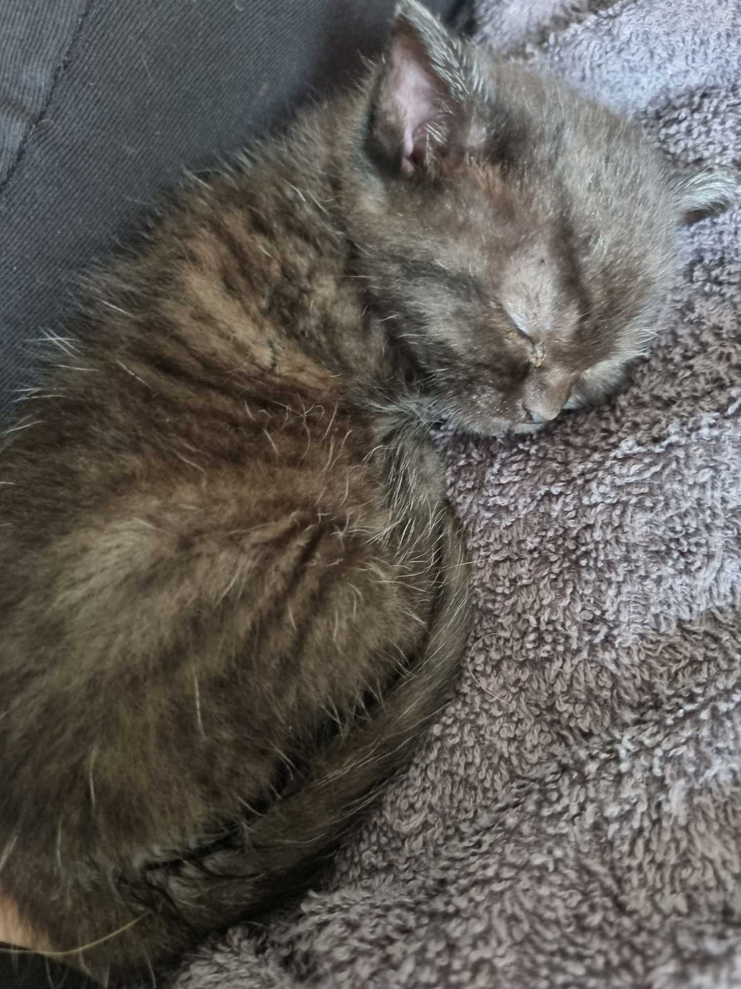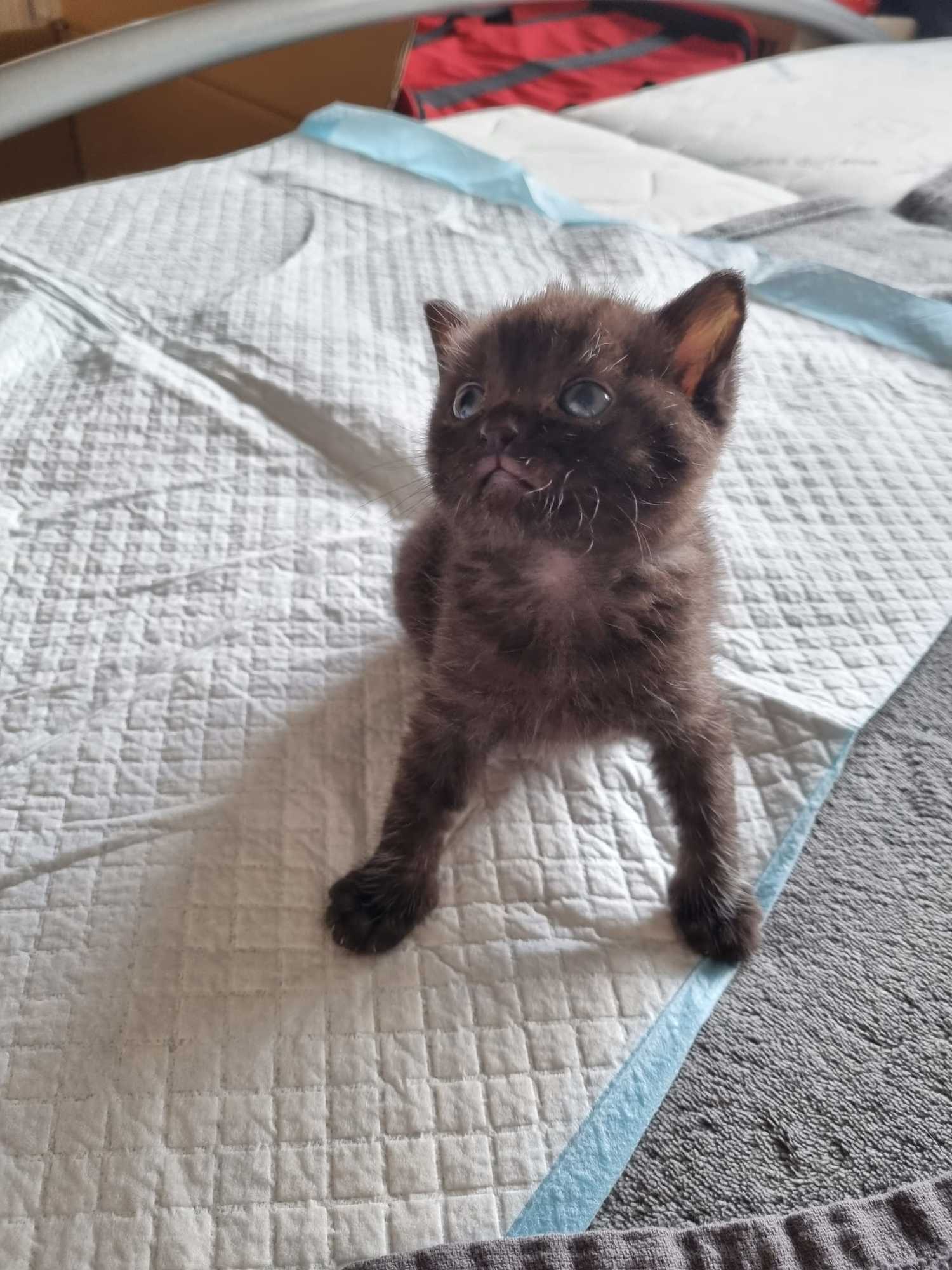 Afrodita byla společně se svým bráškou a dalším mrtvým sourozencem nalezena v kontejneru v igelitové tašce. Je ještě maličká a tudíž vyžaduje ruční dokrmování. Do adopce bude moci odejít k další kočičce, která jí naučí to správné kočičí chování, a to nejdříve ve věku 8 týdnů (tedy od 5.7.2024), jelikož se k nám dostala bohužel bez maminky.