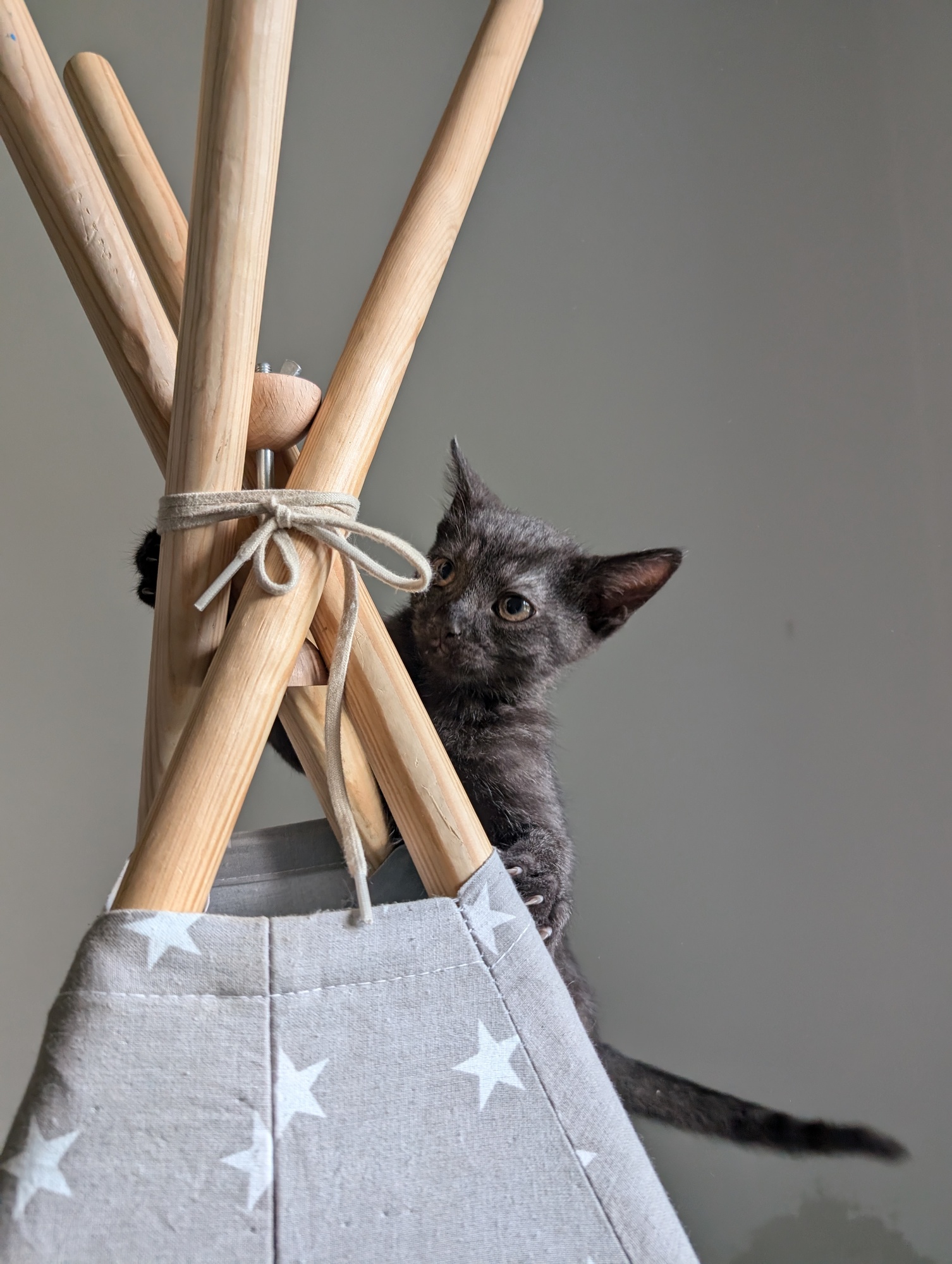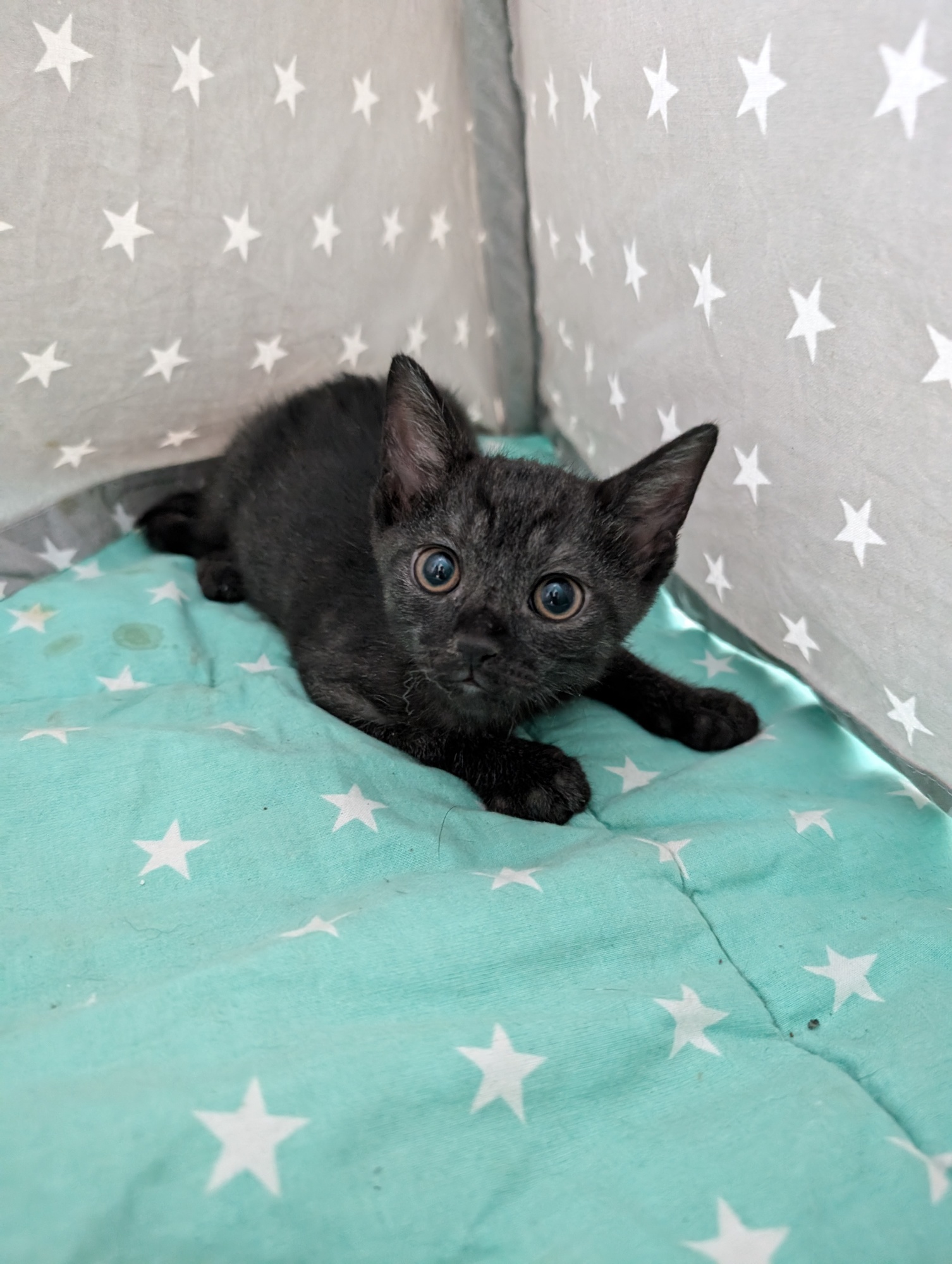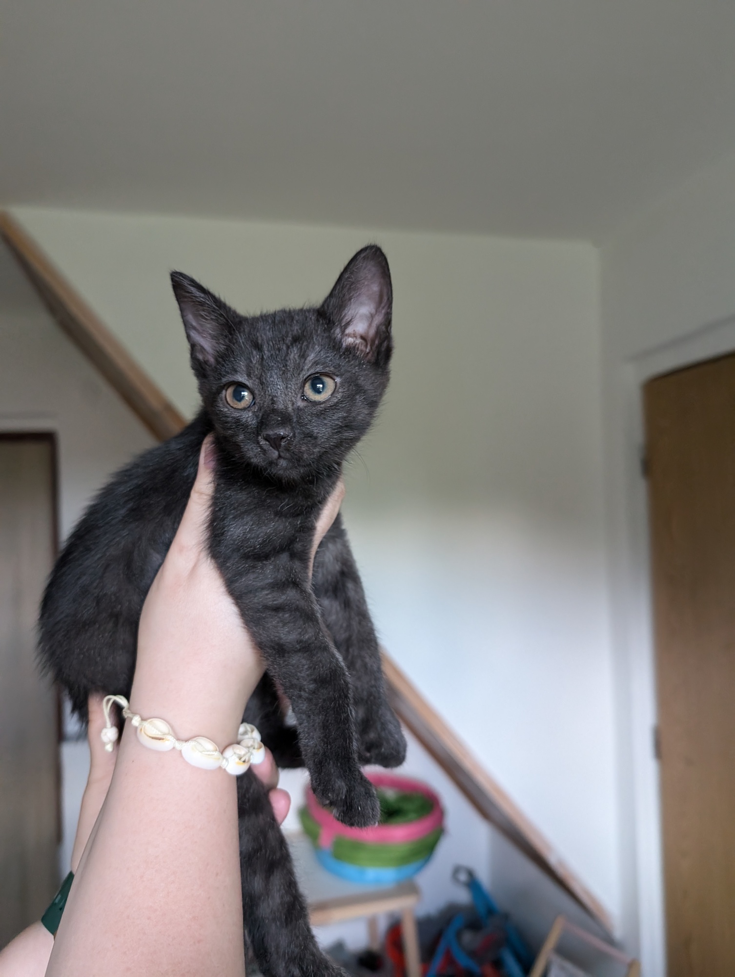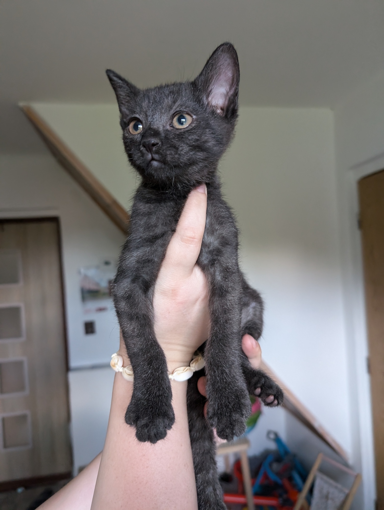 Afrodita byla společně se svým bráškou a dalším mrtvým sourozencem nalezena v kontejneru v igelitové tašce. Je ještě maličká a tudíž vyžaduje ruční dokrmování. Do adopce bude moci odejít k další kočičce, která jí naučí to správné kočičí chování, a to nejdříve ve věku 8 týdnů (tedy od 5.7.2024), jelikož se k nám dostala bohužel bez maminky.