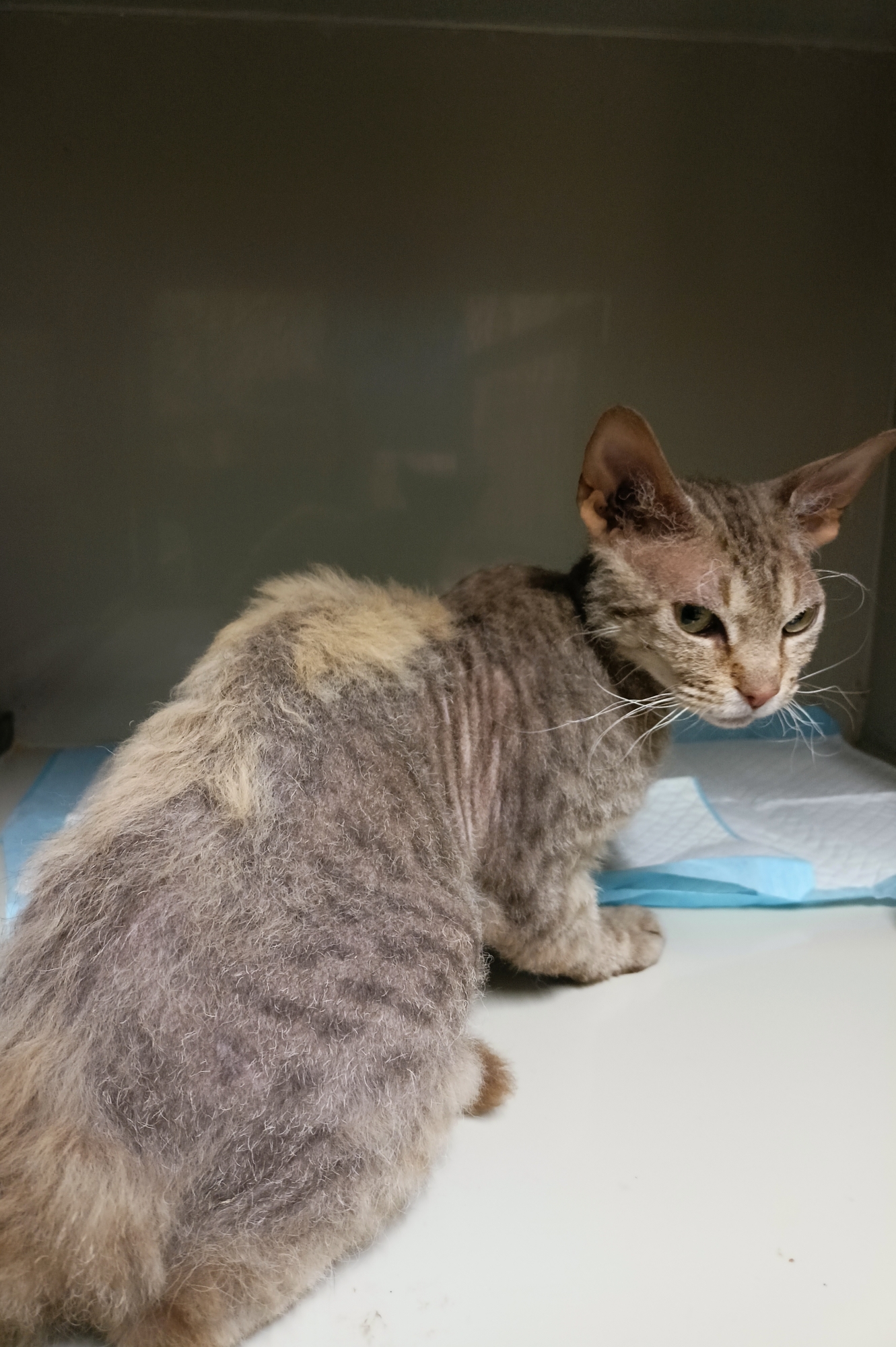 Enza jsme převzali od Městské policie Česká Lípa. Je to kontaktní, upovídaný kocourek. Jde pravděpodobně o bez PP jedince cornish rexe, případně o jeho křížence. Toto plemeno je poměrně aktivní a upovídané. Jeho zástupci nemají rádi samotu a jsou to tak trošku kočko psi. Představitele tohoto plemene s PP můžete vidět v našem depozitu, kde naše Azarina ráda ukazuje všem pokaranténním kočičákům, kdo je tu vůdce a král kočkosmečky :-D