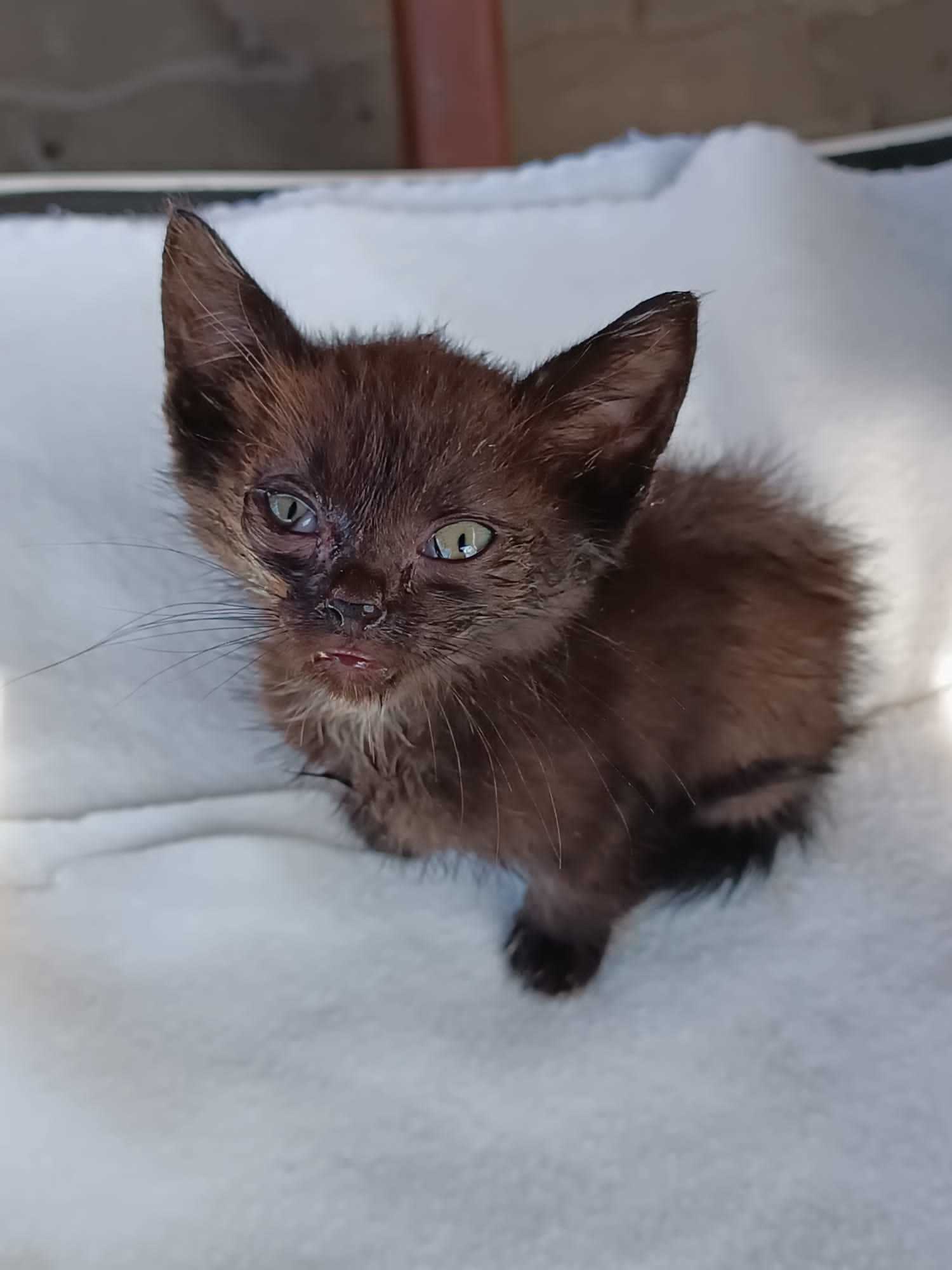 Yoda byl nalezen ve věku cca 5 - 6 týdnů ve zbídačeném stavu v parku v obci Dubá. Měl nejen zánět očí, ale též průjmy a celkově špatnou kondici. V dočasné péči se postupně dává dokupy a stává se z něj opravdový milovník lidí :-) Vzhledem k tomu, že byl přijatý bez matky, bude moci do adopce pouze k další kočičce.