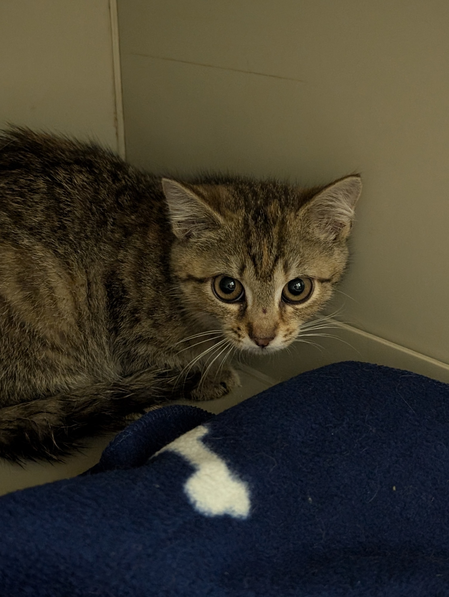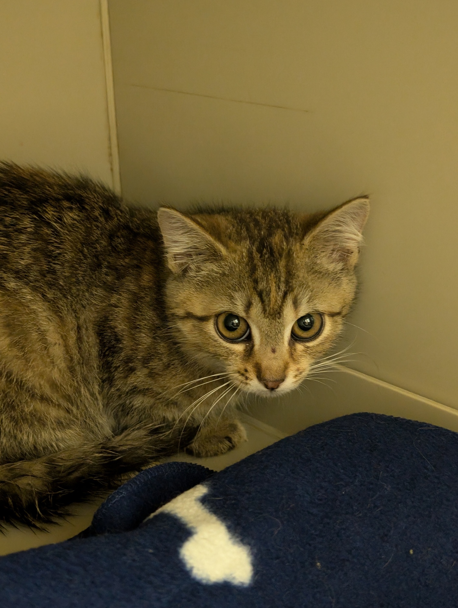 Scottie je kotě zatím bázlivé, potřebuje trpělivost a mazlení. Pochází z mladoboleslavského stadionu, kde se kočky množí bez zájmu města.