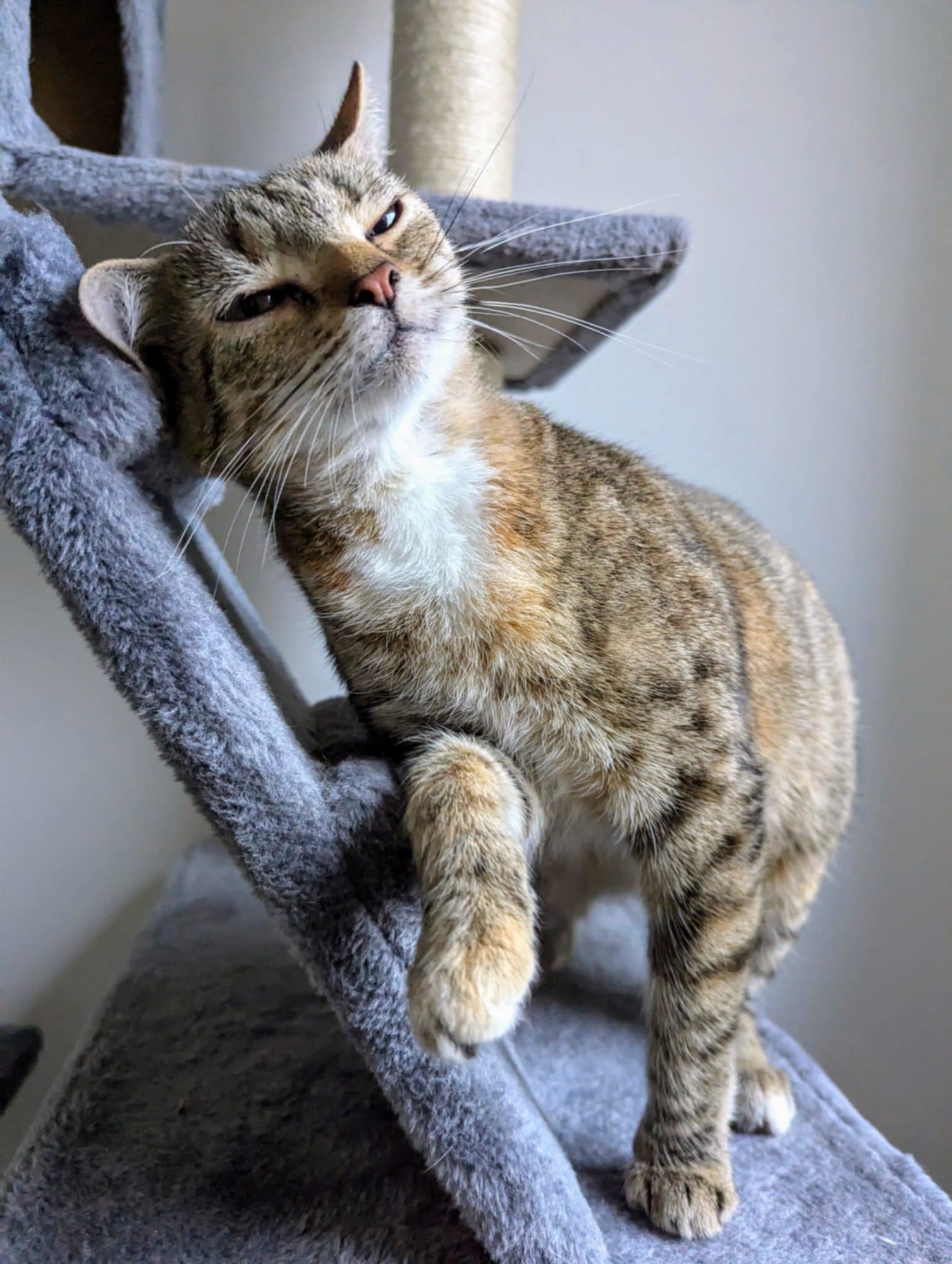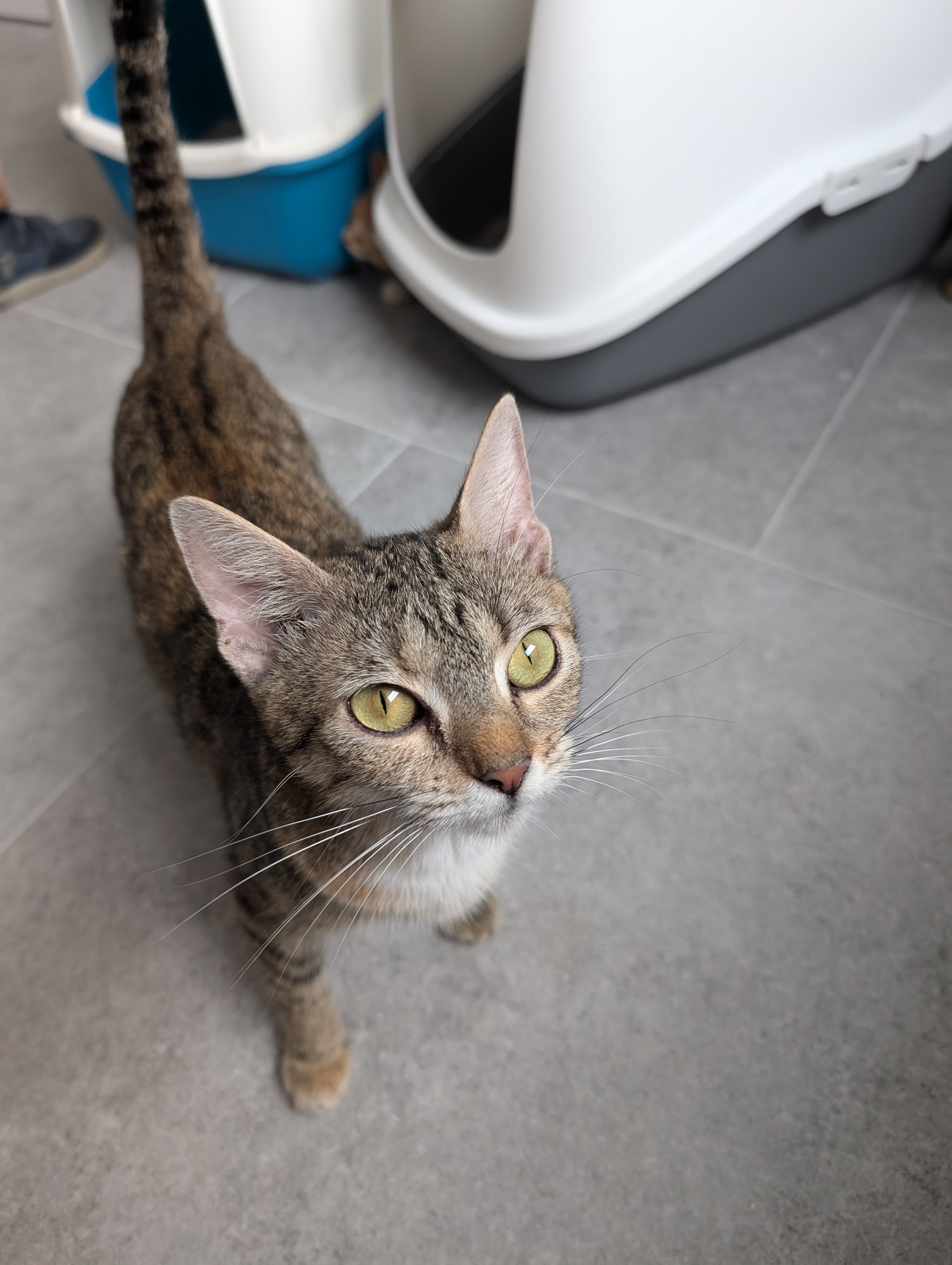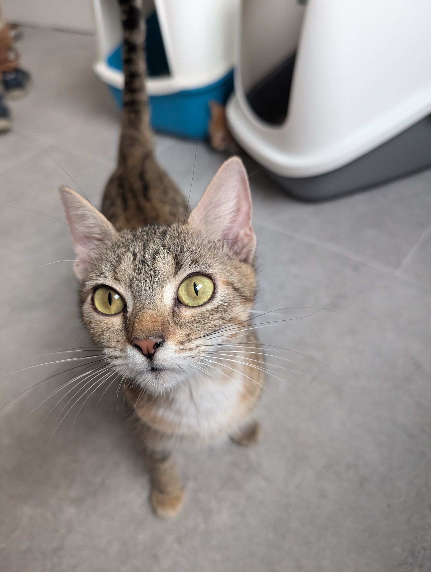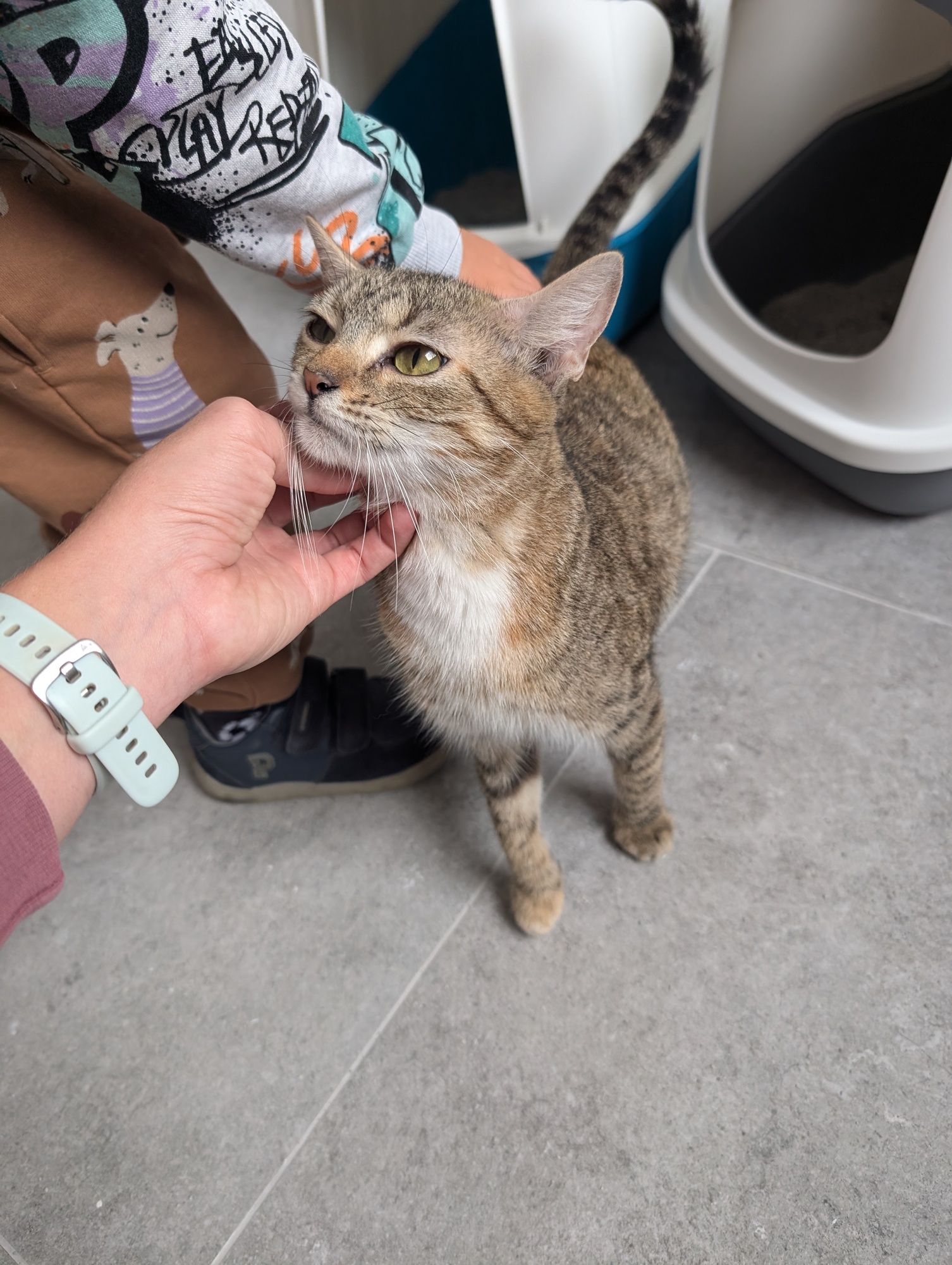 Naomi nám přivezla Městská policie Česká Lípa ve vysokém stupni březosti. Narodila se jí 3 koťátka (Neal, Noby a Nova). Naomi již je po odstavu koťátek, kastraci a její koťátka jsou všechna v nových domovech. Naomka je stále bez zájemců a přitom je to tak milá a mazlivá kočička.