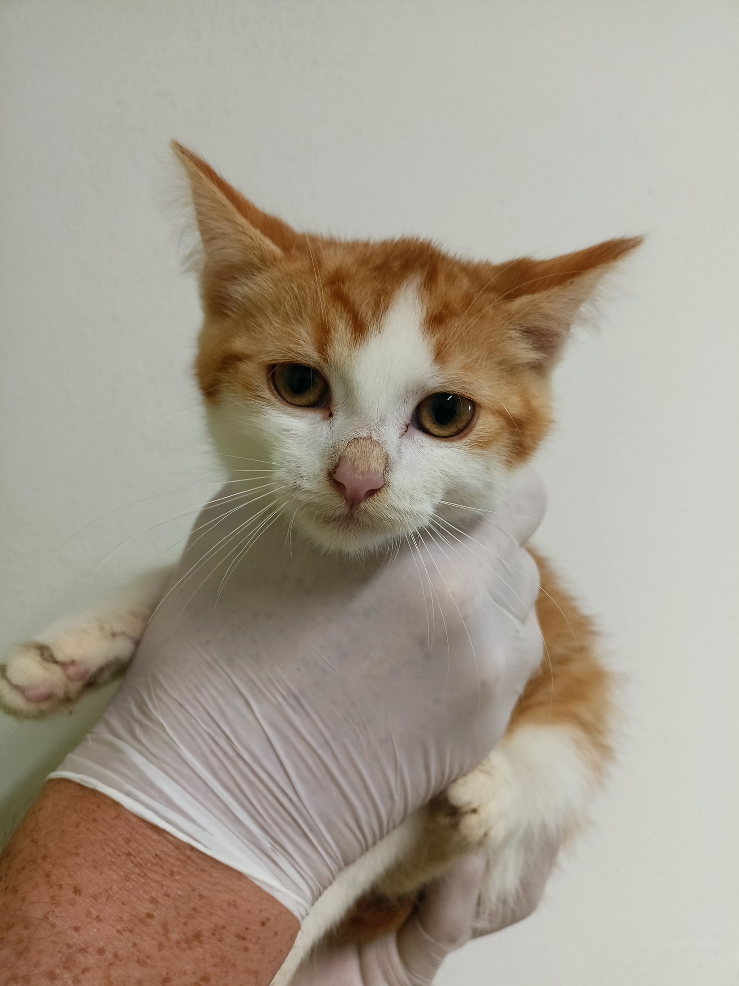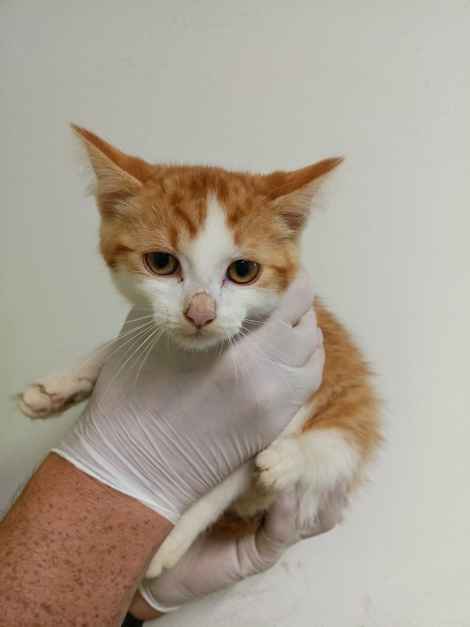 Oggyho nám přivezla Městská policie Česká Lípa společně s dalšími čtyřmi sourozenci. Oggy je zatím bázlivý, snad se nám ho podaří vymazlit. K lidem nemá žádnou důvěru. Oggyho maminka byla zařazena do kastračního programu a po kastraci půjde zpět do původní lokality, kde má zajištěn přístřešek a krmivo.