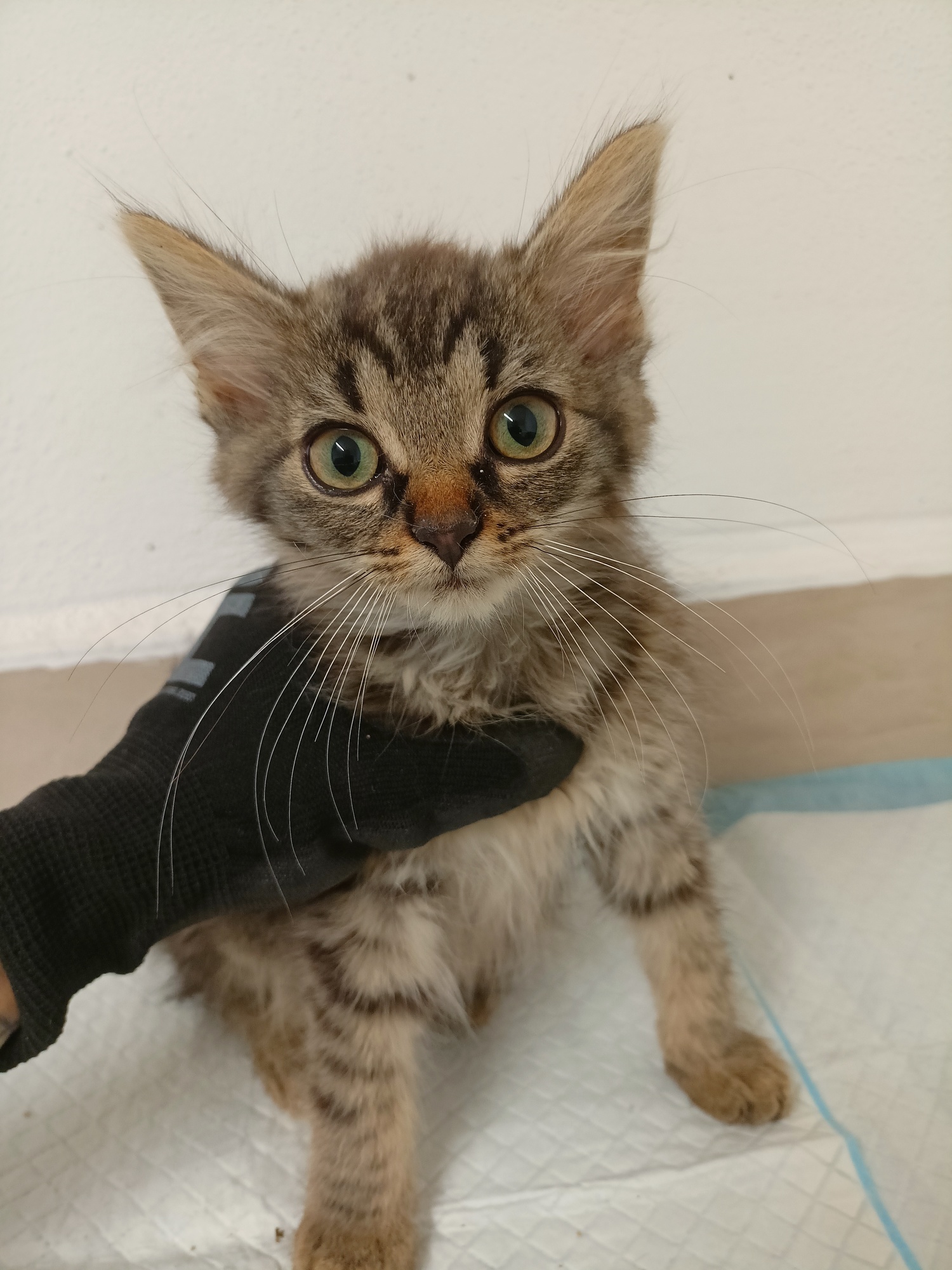 Olívii nám přivezla Městská policie Česká Lípa společně s dalšími čtyřmi sourozenci. Olívia je zvědavé koťátko, které půjde velmi dobře vymazlit. Její maminka byla zařazena do kastračního programu. Po kastraci půjde zpět do původní lokality, kde má zajištěn přístřešek a krmivo. Olívia má po mamince delší srst, bude z ní jednou opravdová kráska :-)