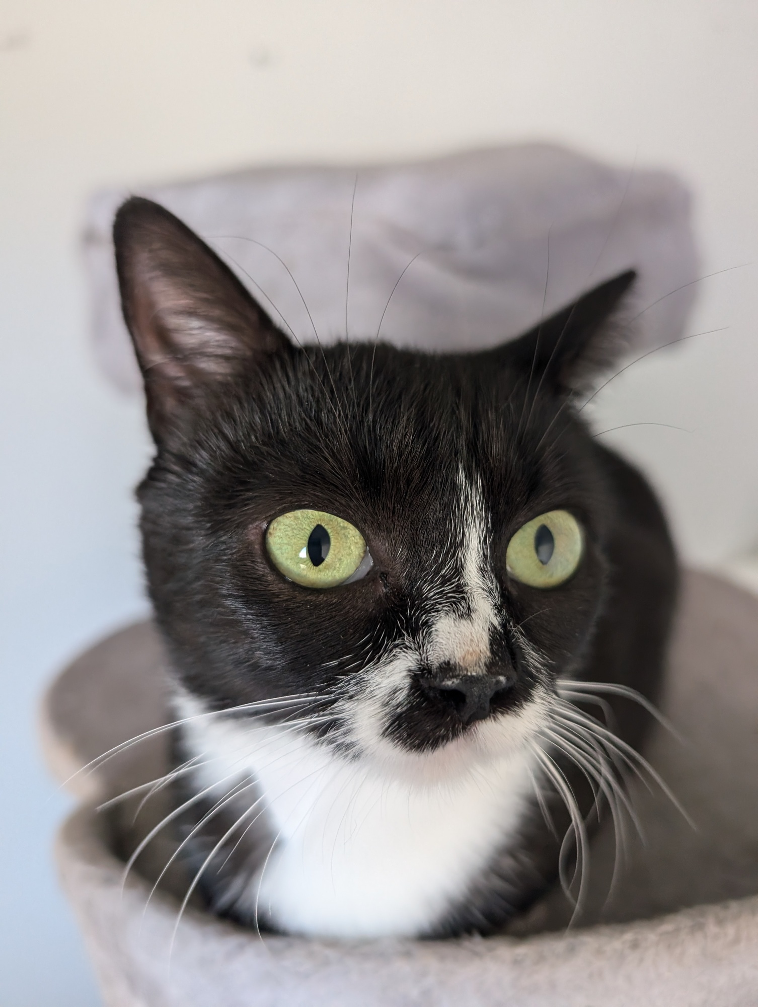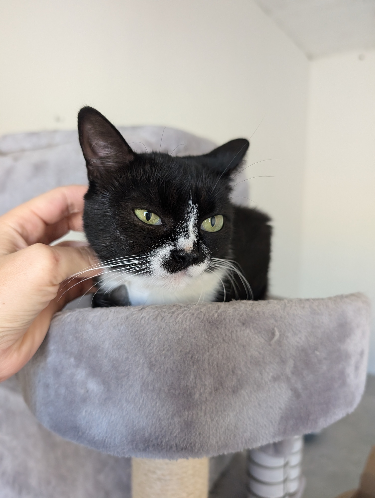 Moc hodná kočička, která je skvělá máma a bude úžasná společnice. Ve skupině koček je zcela nekonfliktní, nehodila by se domů k nějaké kočičí sekernici, která by ji šikanovala. Je mazlivá a komunikativní, má nádherné hebký kožíšek.