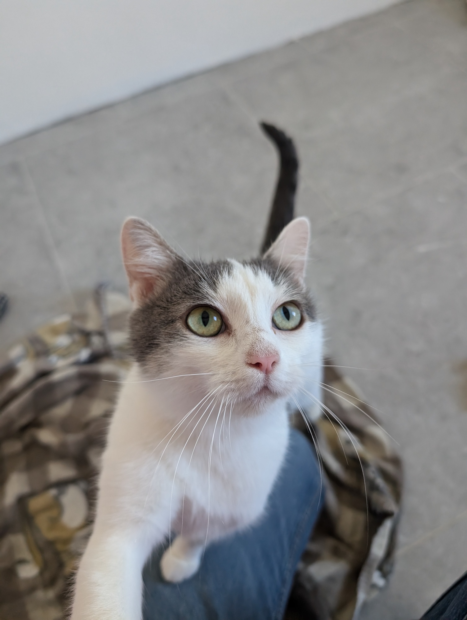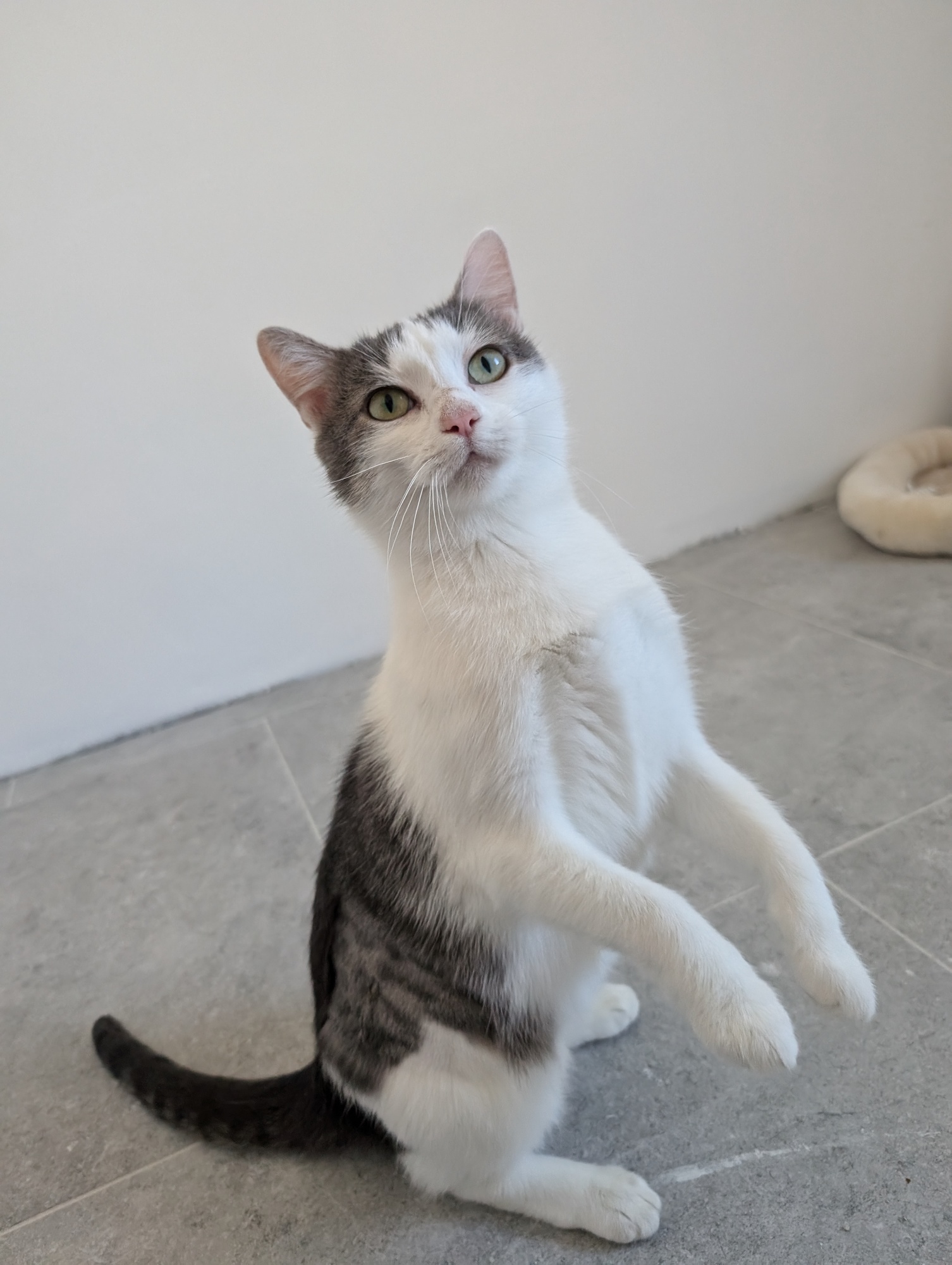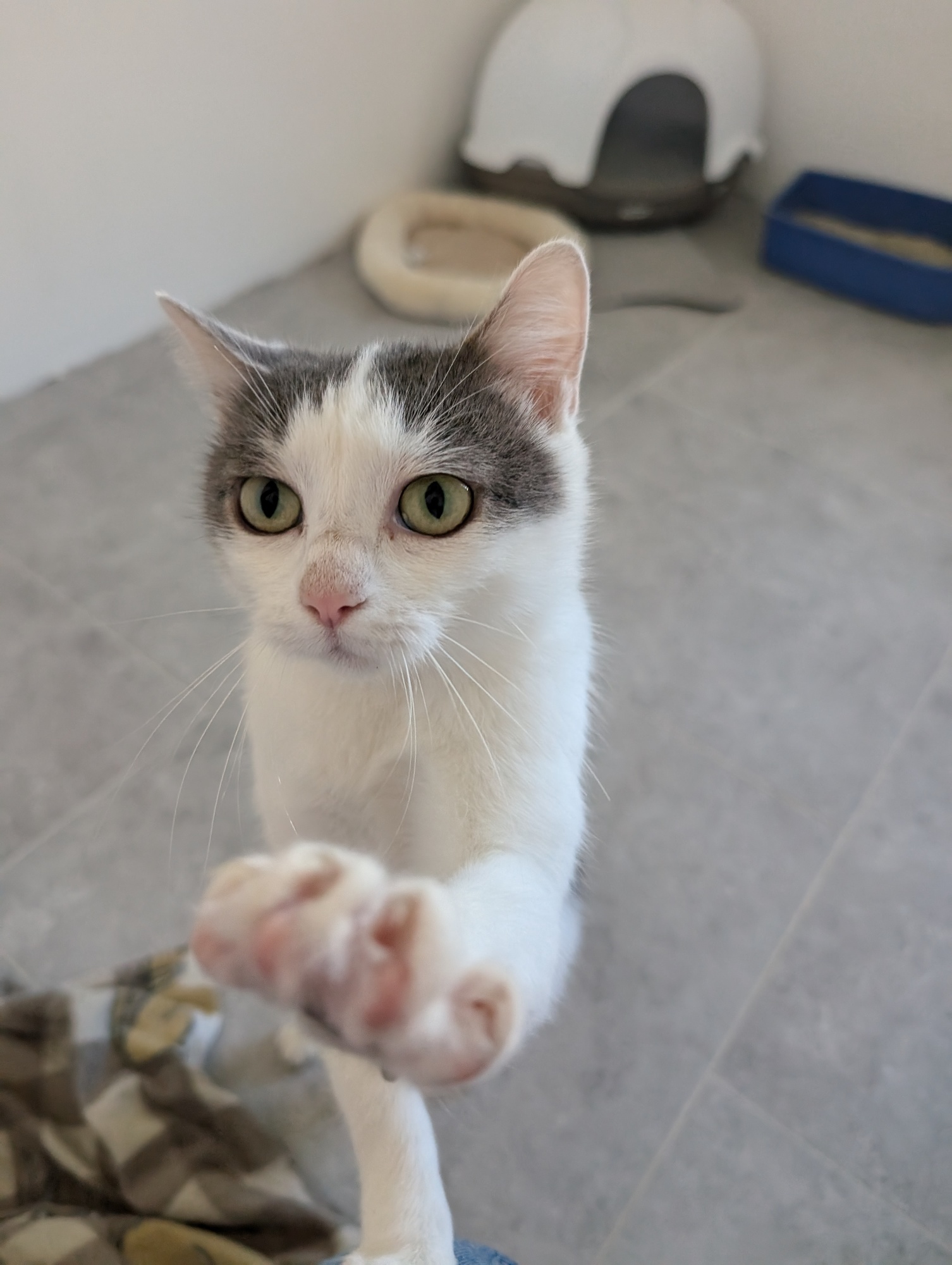 Moc hodná kočička, trpělivá a milá. Bude úžasnou společnicí, je mírné povahy, ale nepovrhne nabídkou na hru :) Slovanku je těžké pořádně vyfotit, protože se snaží být na nás nalepená a ducánkuje hlavičkou nebo v lepším případě panáčkuje jako surikata :) Pravděpodobně jde o kříženku britské kočky.