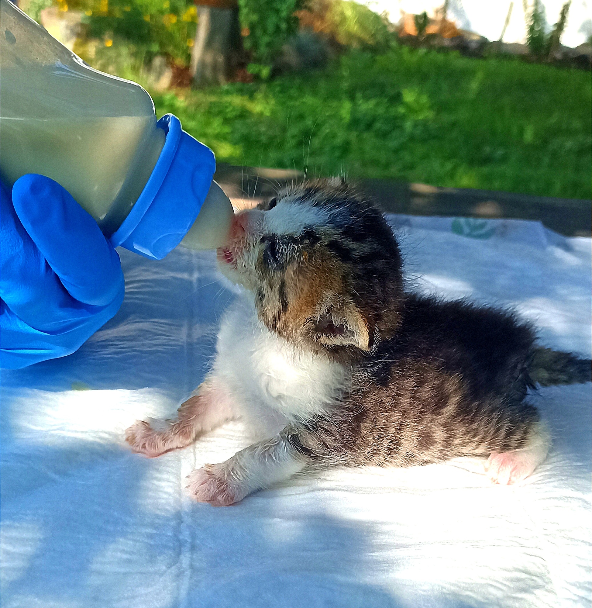 Iris byla nalezena jako bezbranný uzlík odkázáný na odkrm flaškou, což se nakonec povedlo. Pomalu začíná jíst sama. Bylo podezření na křivici, naštěstí poslední kontrola proběhla dobře a zdravotně bude v pořádku :)