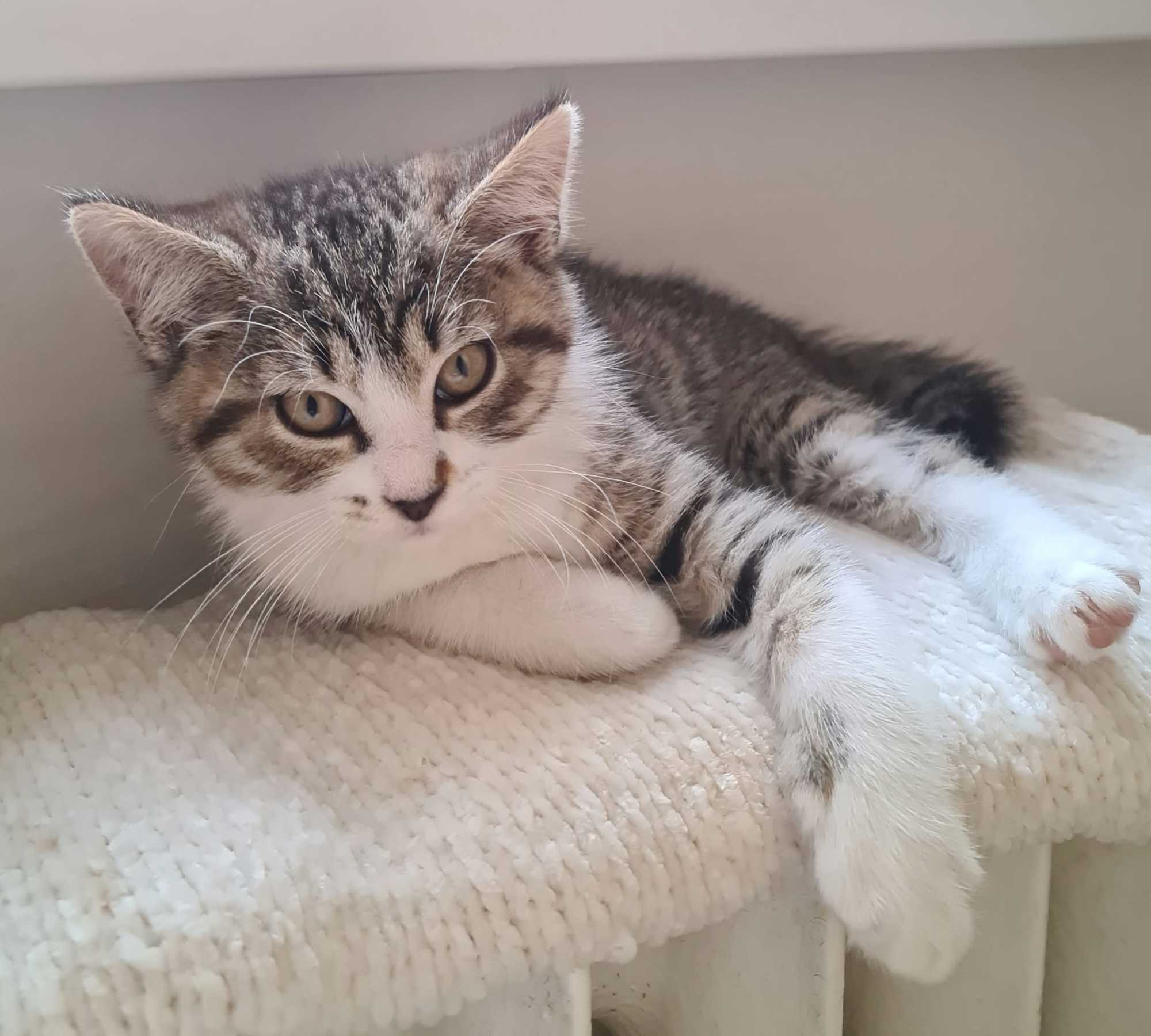 Narodila se plaché kočce na sídlišti, ale v dočasné péči rozkvetla :) Při pohlazení už vrní, zlepšuje se každým dnem.