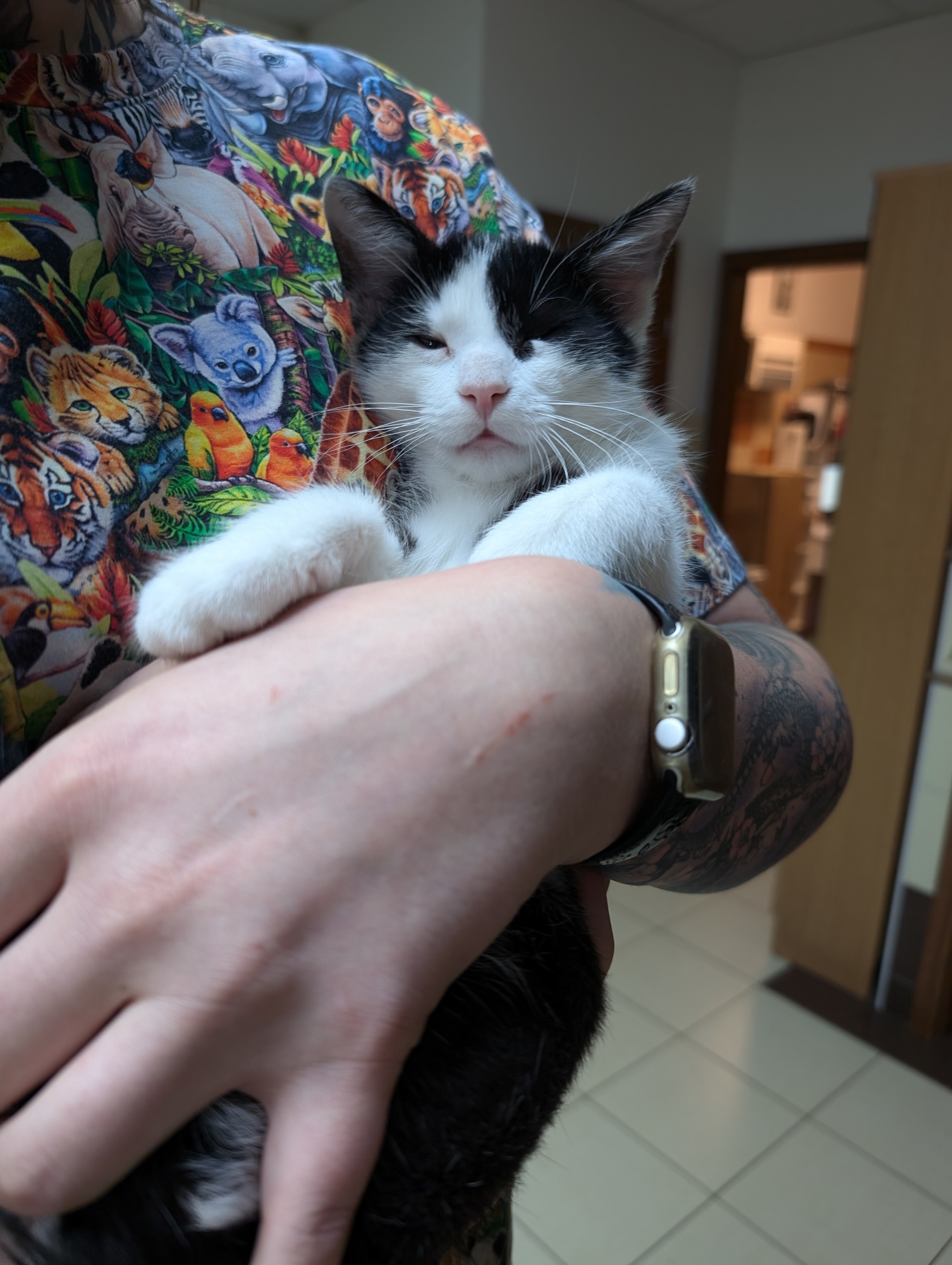 Larryho nálezci přinesli ve stavu, kdy působil, že je v horším stavu, než byl. Zřejmě ho srazilo auto, naštěstí RTG ukázal, že je v pořádku, jen má vylomený špičák.
