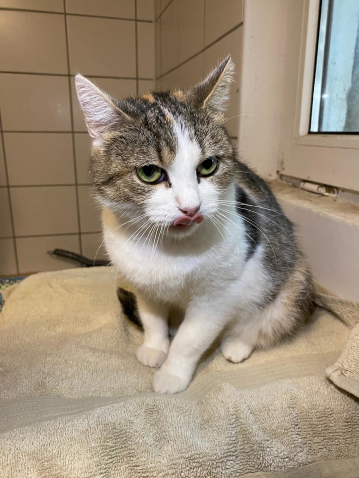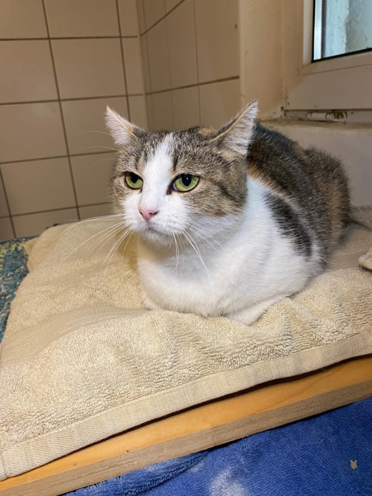Elsa je báječná kočka, která miluje lidi. Žila v chátrajícím domě s asociálními majiteli a má za sebou 9 vrhů. Při kastraci se zjistilo, že dalšího porodu by se pravděpodobně nedožila, děloha byla na rozpadnutí. Po kastraci se měla vrátit do domu, k novým majitelům nemovitosti, ti si to však rozmysleli. Elsa je kočka, která by ráda žila v domě s přístupem ven, kde bude mít spoustu mazlení, ale žádné jiné kočky, ty hrubě šikanuje a vyhání ze “svého" teritoria. Je kastrovaná, plně očkovaná, v současnosti chodí ven, neboť ji nelze zařadit do kolektivu koček a nemůžeme ji držet trvale v kleci. Sžití s kočkami u dočaskářky se nezlepšilo ani po dvou měsících, uklidňujících kapkách nebo feromonovém obojku. Respektuje ji i pes. K lidem je nesmírně hodná, mazlí se i na veterině, ráda se chová a hoví si na člověku.