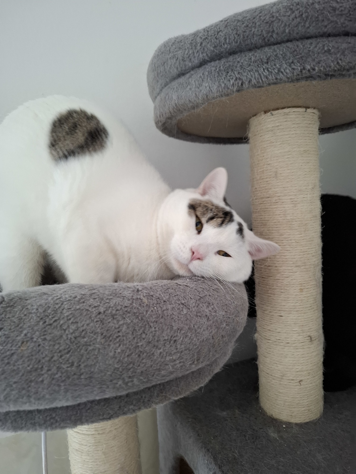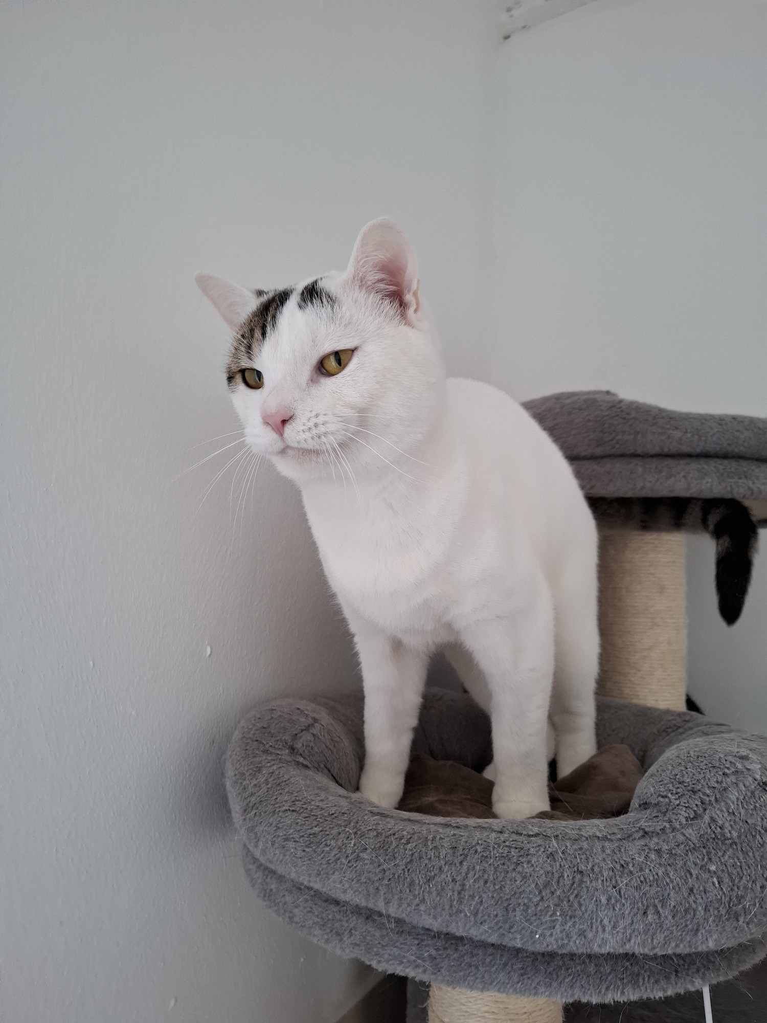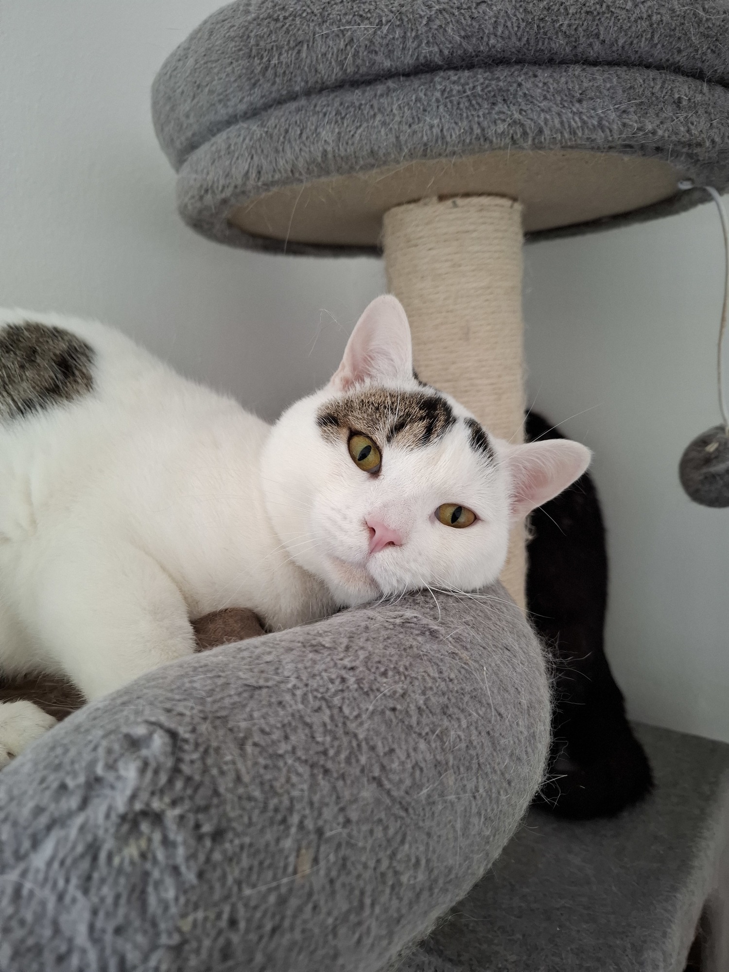 Kocourek Falafel je ultra roztomilouš. Přišel k nám vyděšený, zanudlený, se špatnou srstí. Nyní má hedvábnou srst, a i když je zprvu opatrný, jakmile jej pohladíte, začne se nakrucovat jako břišní tanečnice :) Čistotný, zvyklý na jiné kočičky.