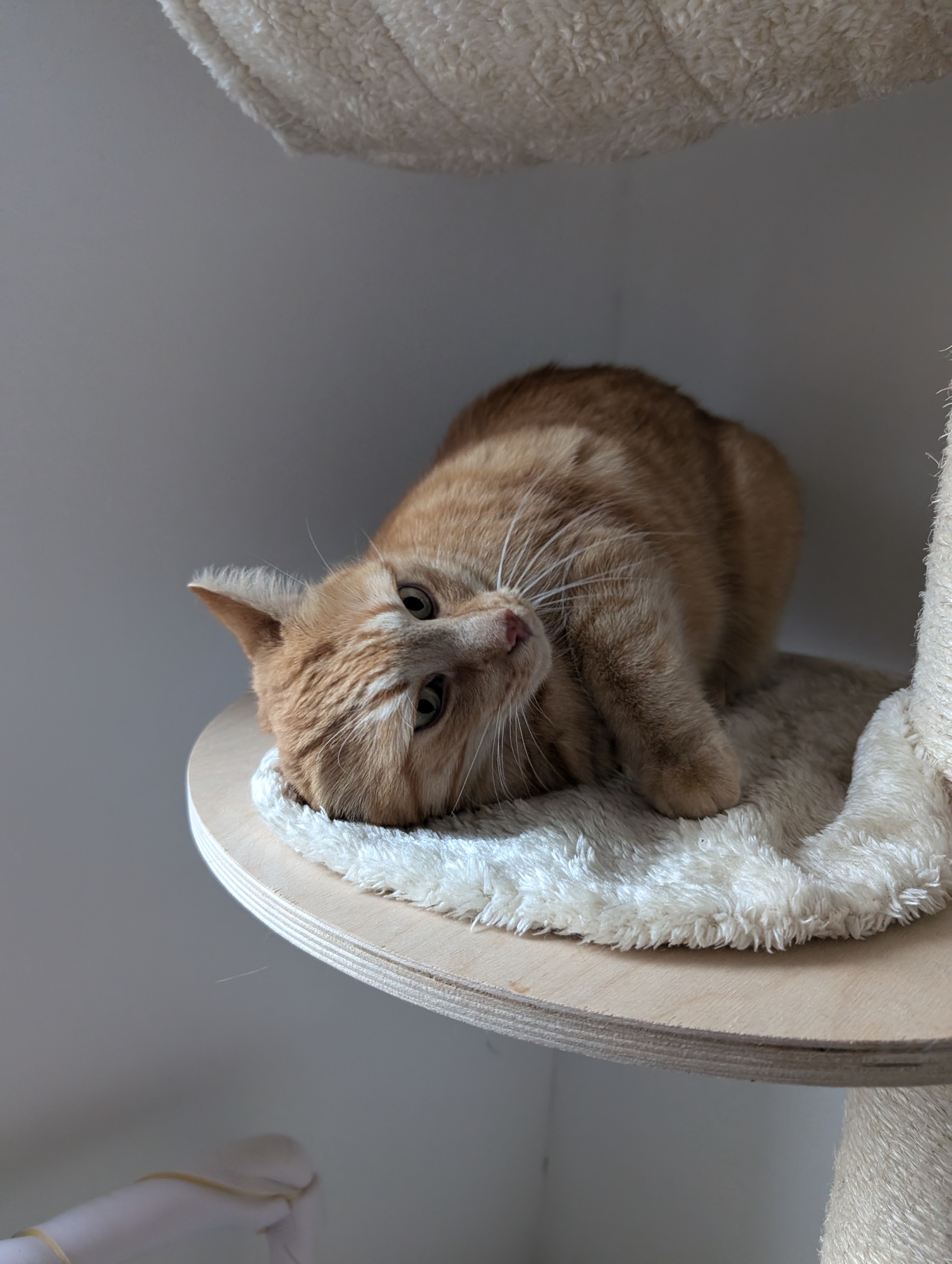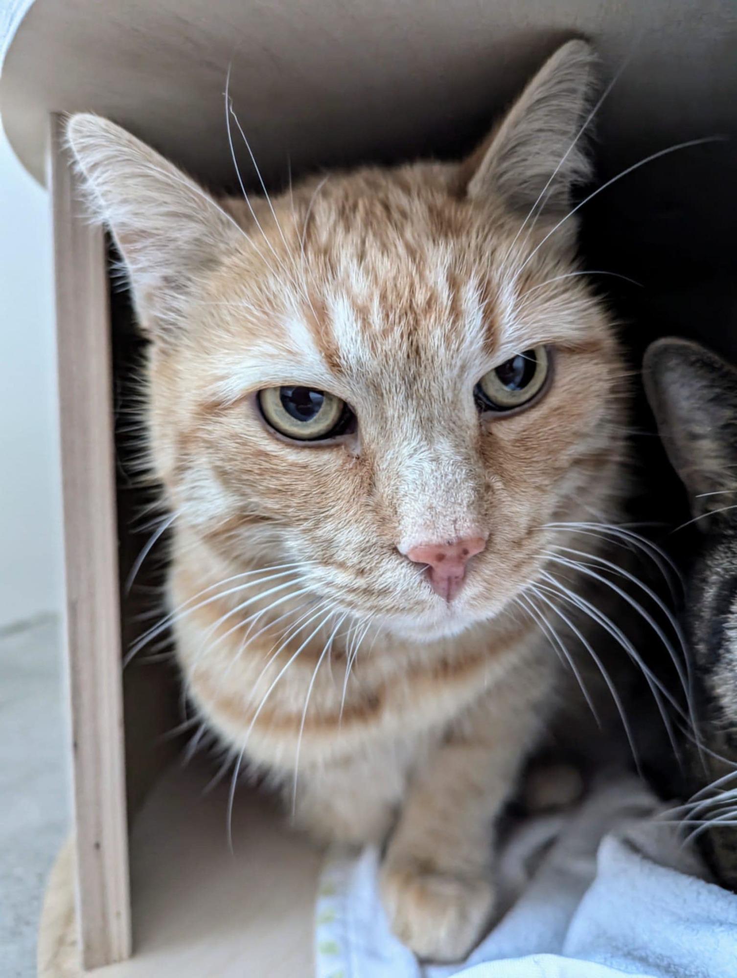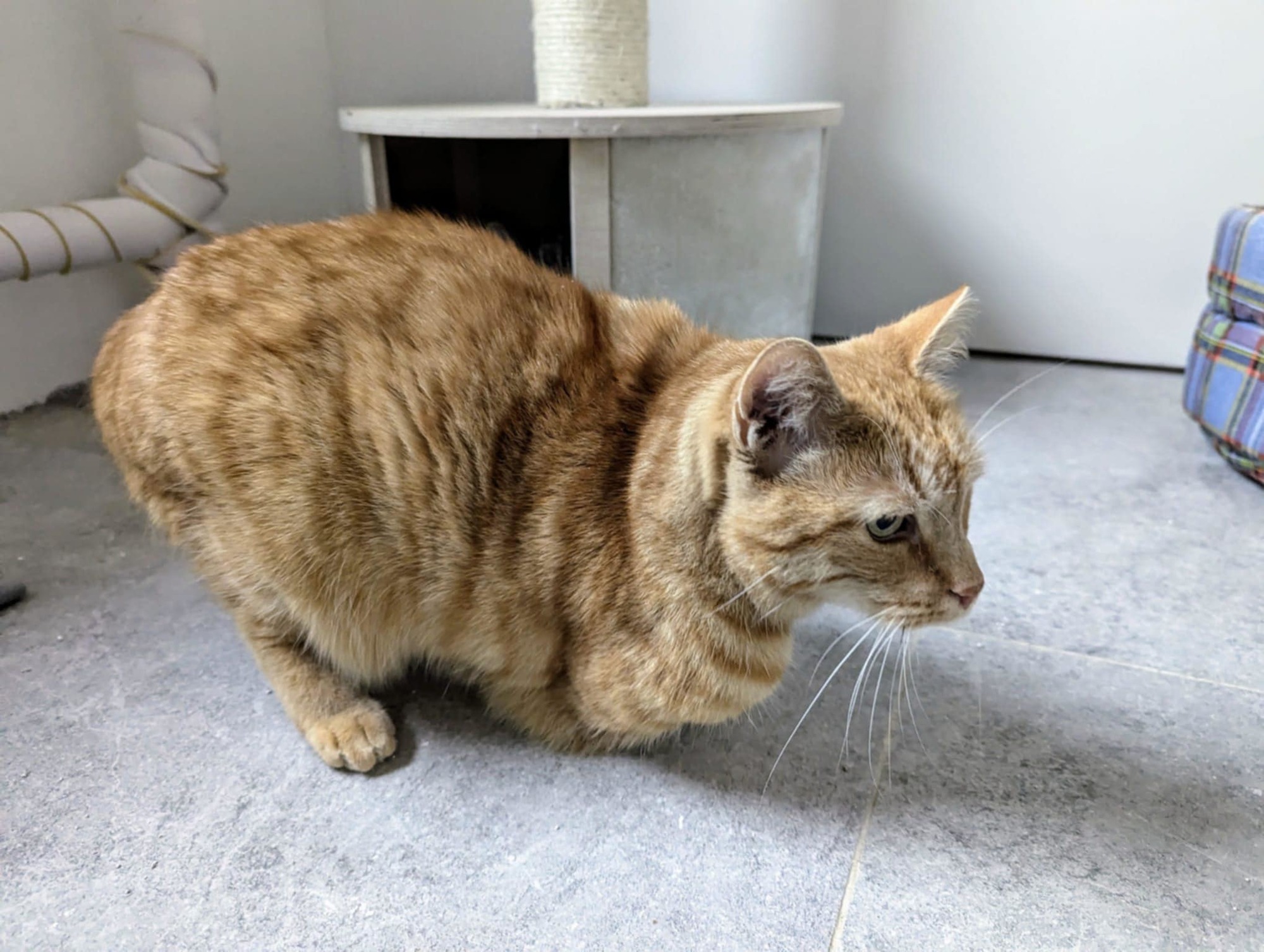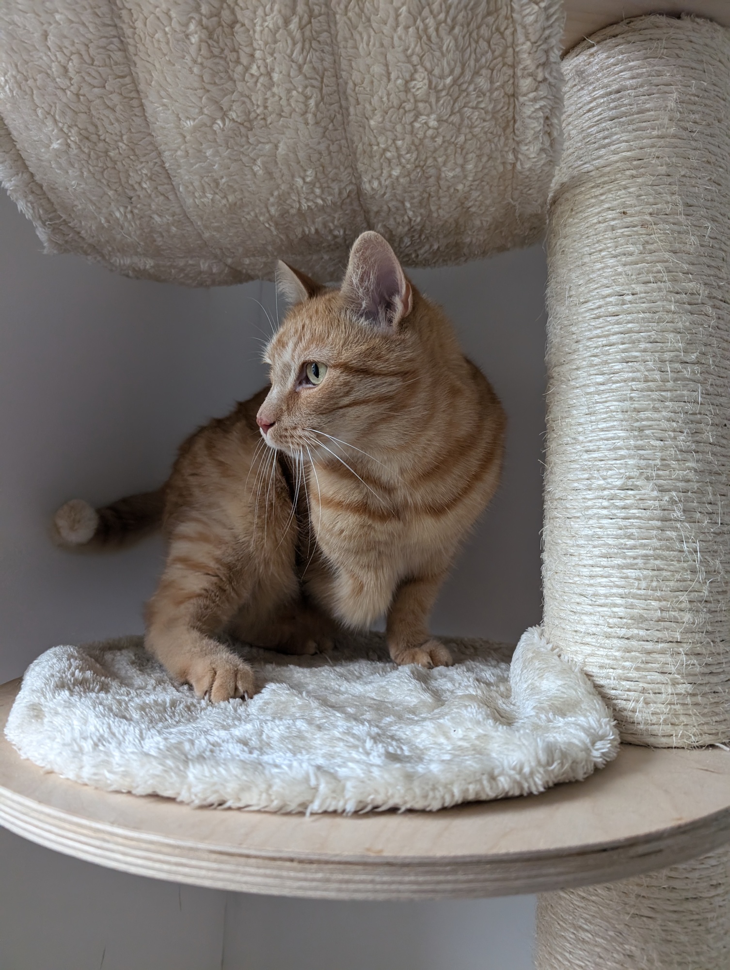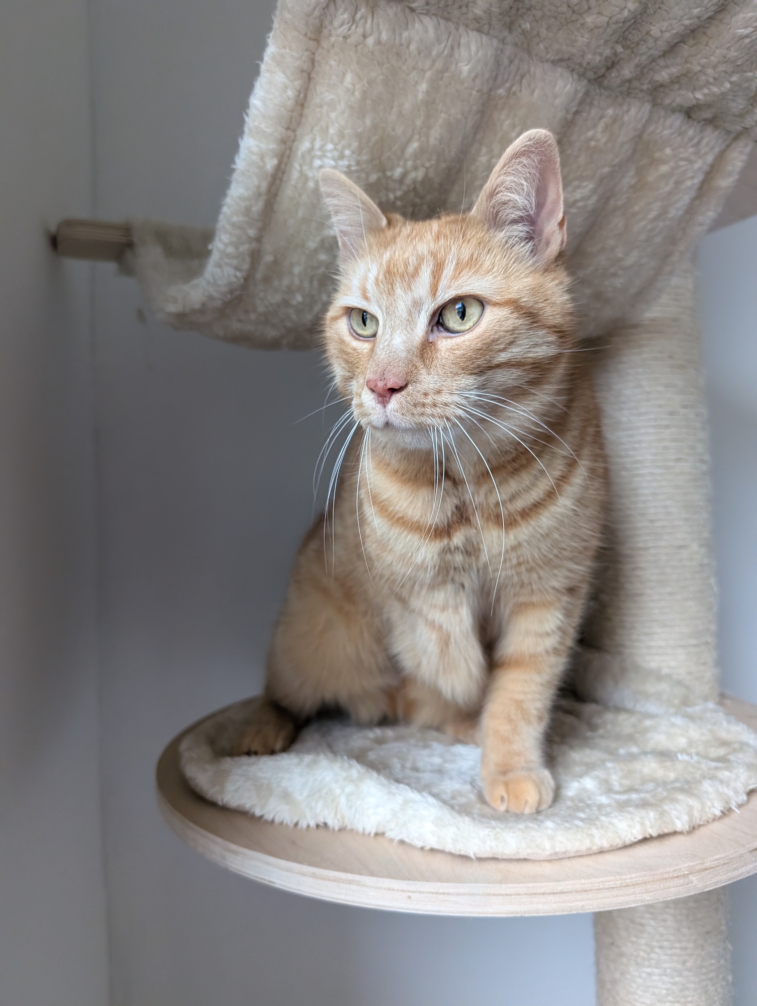 Tygřík je velký mazel. Chybí mu přední nožička, ale nijak ho to neomezuje. Miluje kočičí a lidskou společnost.