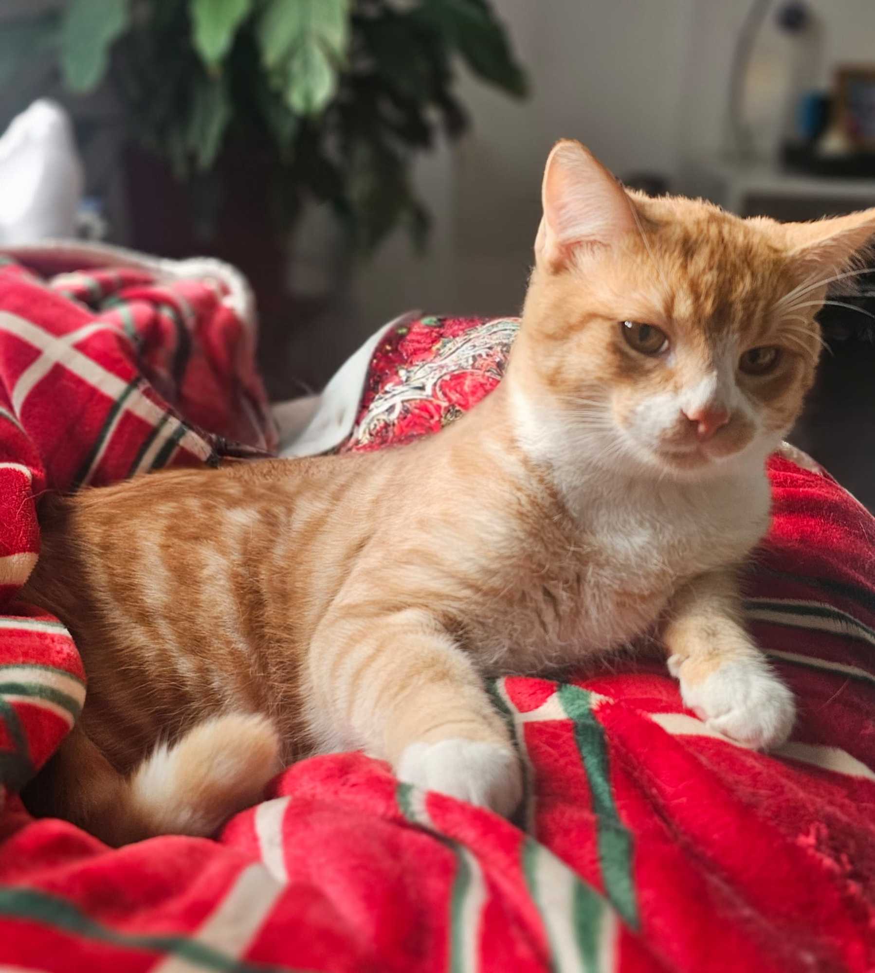 Veselý a komunikativní kocourek, brzy o něm přineseme více informací. Je zvyklý na brášku Michaela, spolu žili jen v bytě, nejsou zvyklí chodit ven.