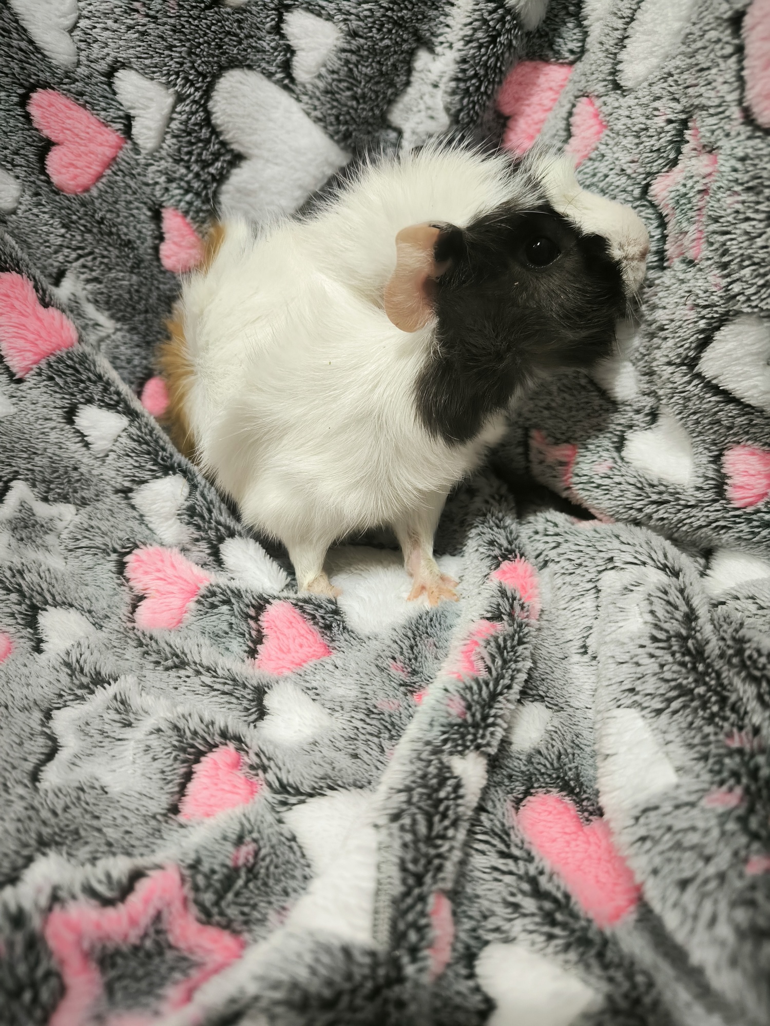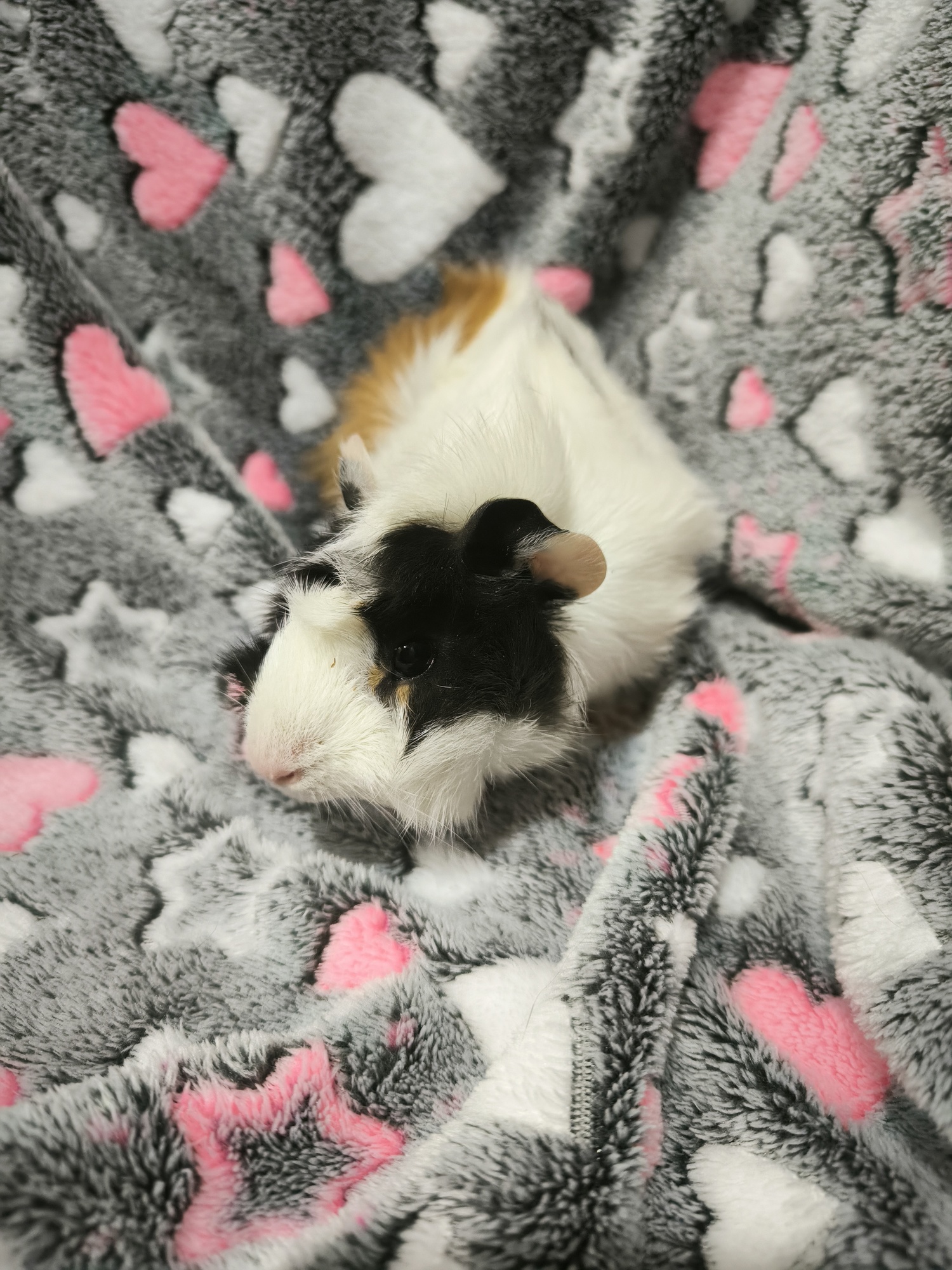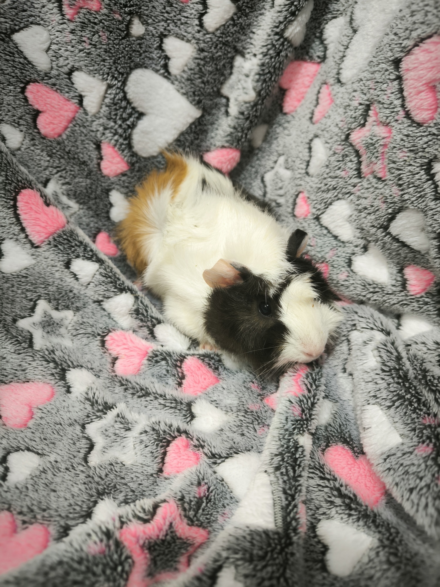 Krásná tříměsíční rozetí holčička je velmi zvědavá a momentálně dělá společnost těhulce Curly. Do adopce vhodná určitě k dalšímu morčátku, je velmi společenská.