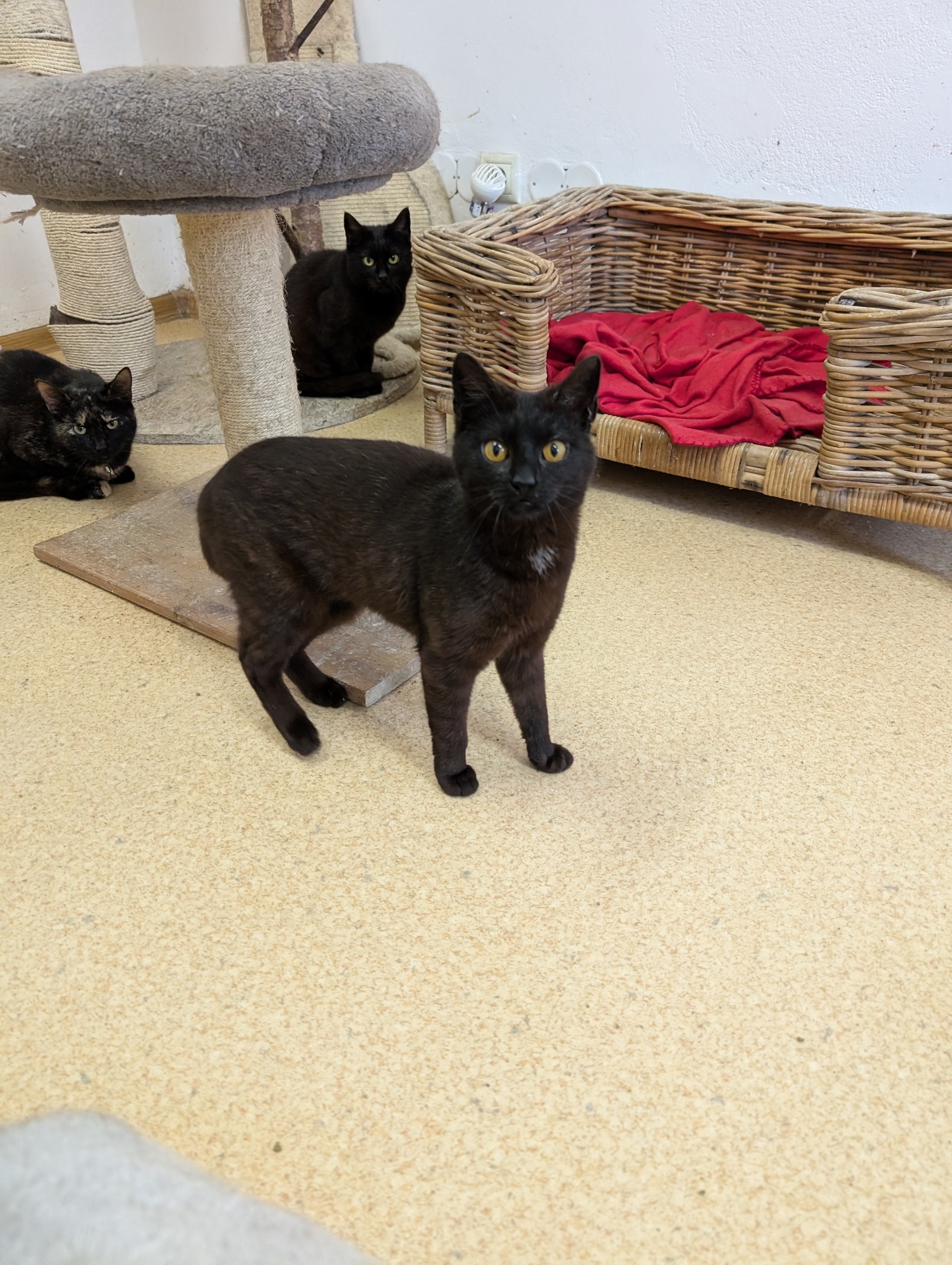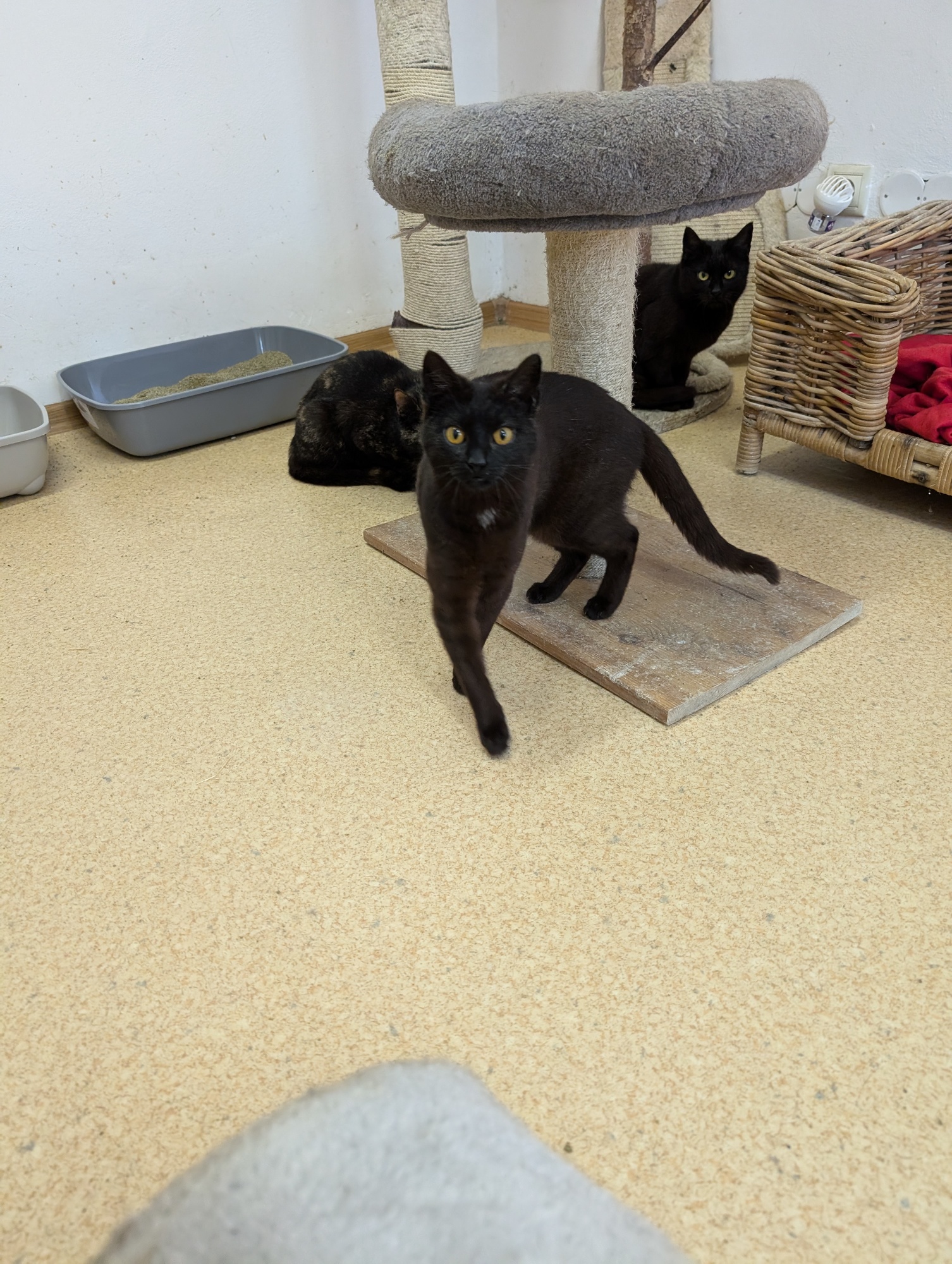 Plachá kočička z kauzy přemnožených koček. Zatím z černých kočiček jediná, která se k nám přiblíží a je zvědavá, má šanci na to, že z ní bude fajn společnice, ale nový páníček musí chápat, že potřebuje vyléčit dušičku.