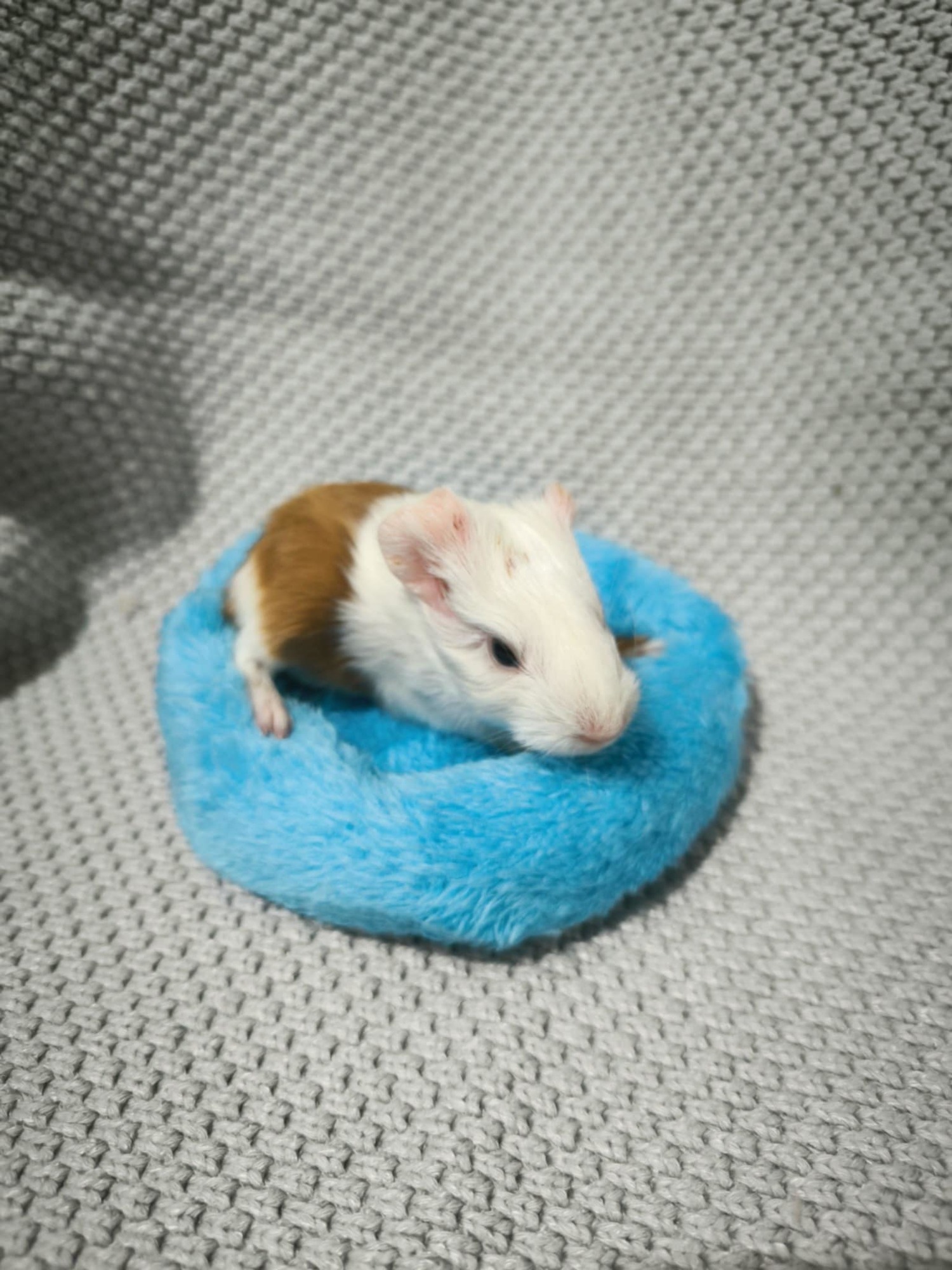 Mrňousek narozený samičce Curly, která je dlouhostrstá. Po odstavu bude hledat nový domov se svým bráchou Cameronem nebo k dalšímu samečkovi.