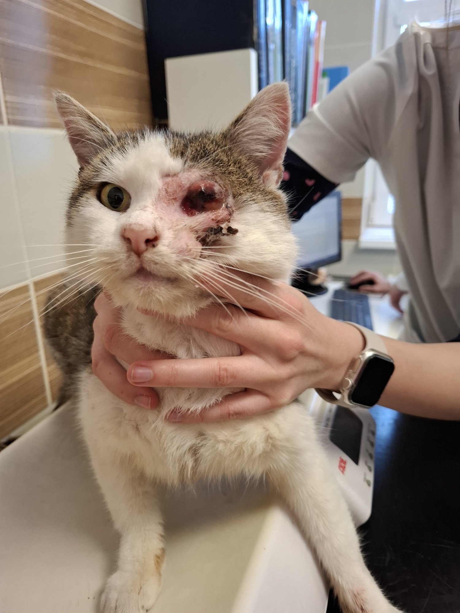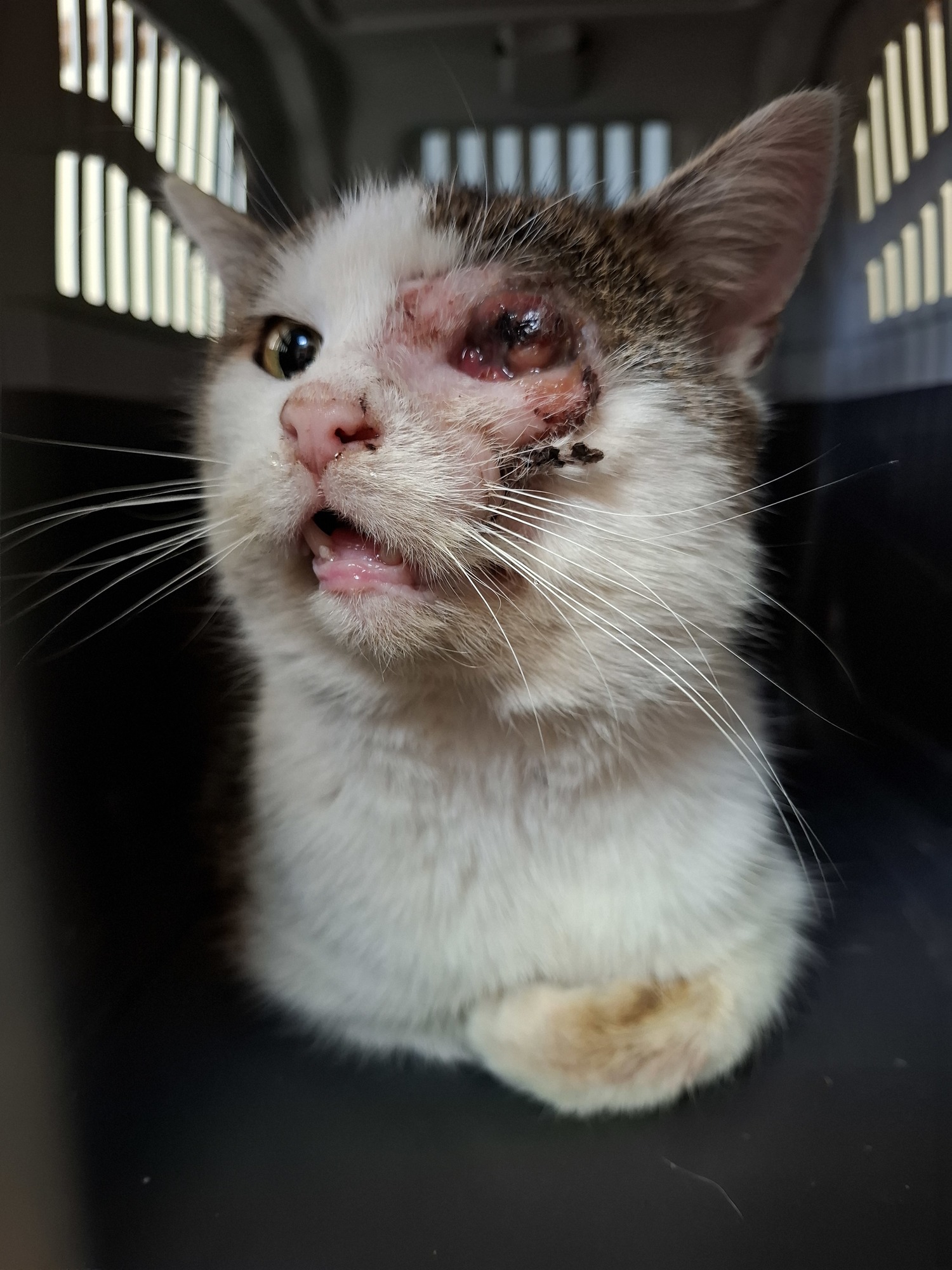 Tento kocourek se toulal několik týdnů s hrozivě vyhlížejícím okem. Měl v něm nekrozu, oko mu prasklo, když se odchytil do sklopce. Bylo jasné, že potřebuje neodkladnou veterinární péči a operaci. Enukleaci oka zvládl bez problému, při zákroku byl také kastrován. Odin dostal své jméno po vládci severských bohů, který byl také jednooký. Je to velký bojovník. I s vyteklým okem se ze všech sil mazlil, opravdu si přeje zase někomu patřit...