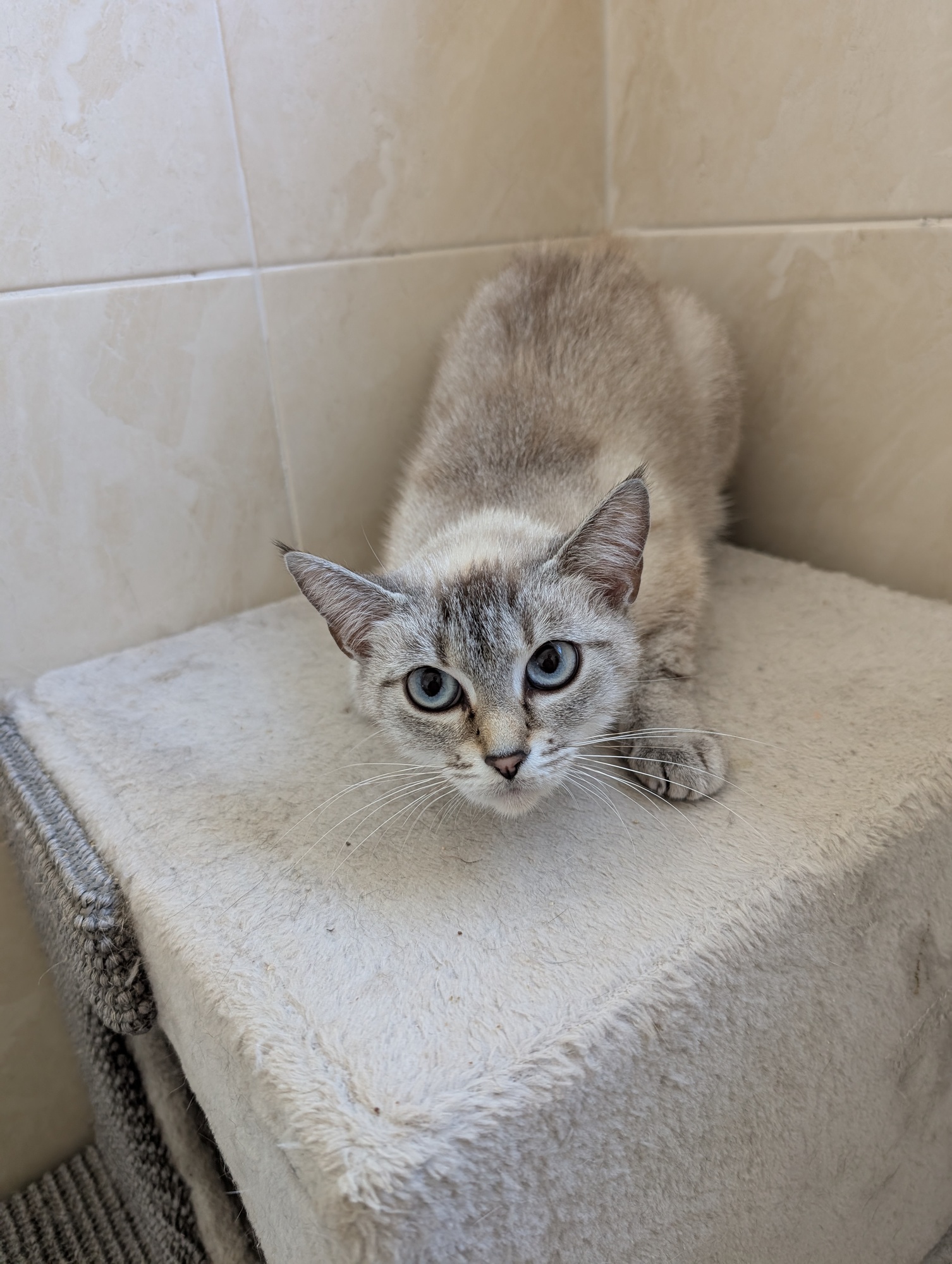 Bumbajka je nádherná kočička, která pochází z kauzy, kdy se namnožilo v bytě 1+1 30 koček. Je proto na sebe opatrná a bude potřebovat od nového majitele trošku času a trpělivosti.