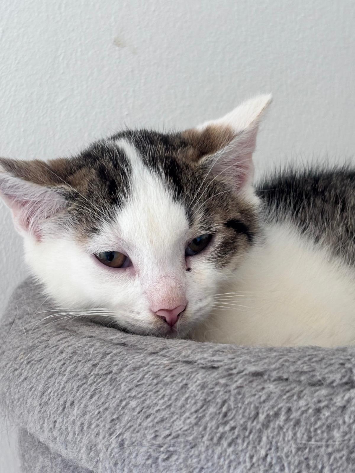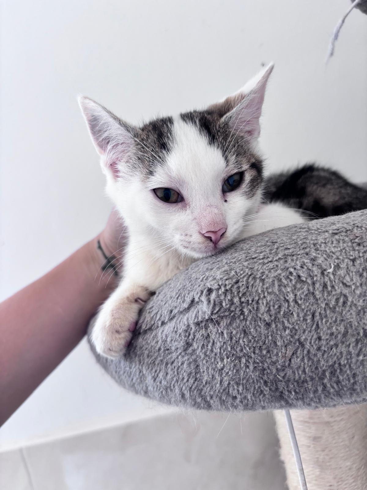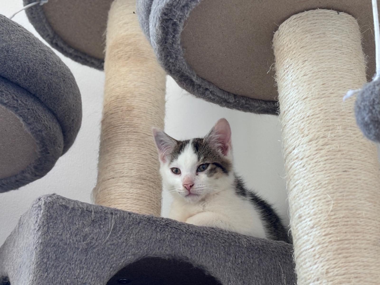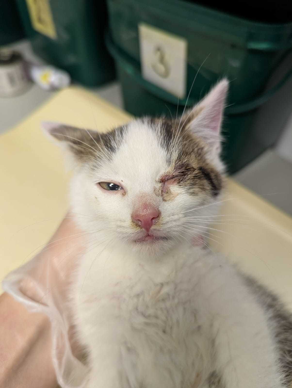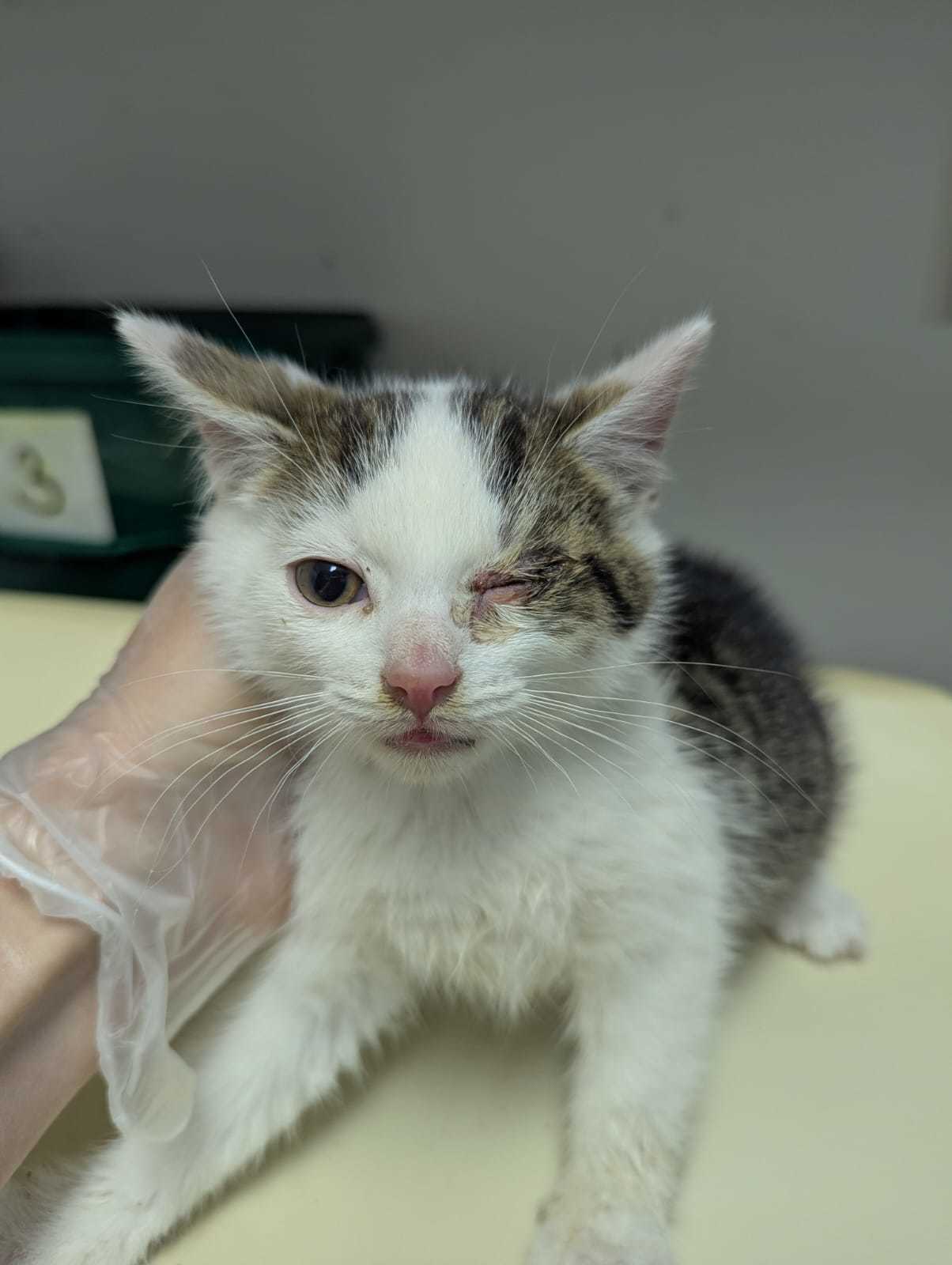 Bázlivé koťátko, kterému budeme urgentně po léčbě hledat nový domov, kde by jej vymazlili a ukáhzali, že se nemusí ničeho bát.