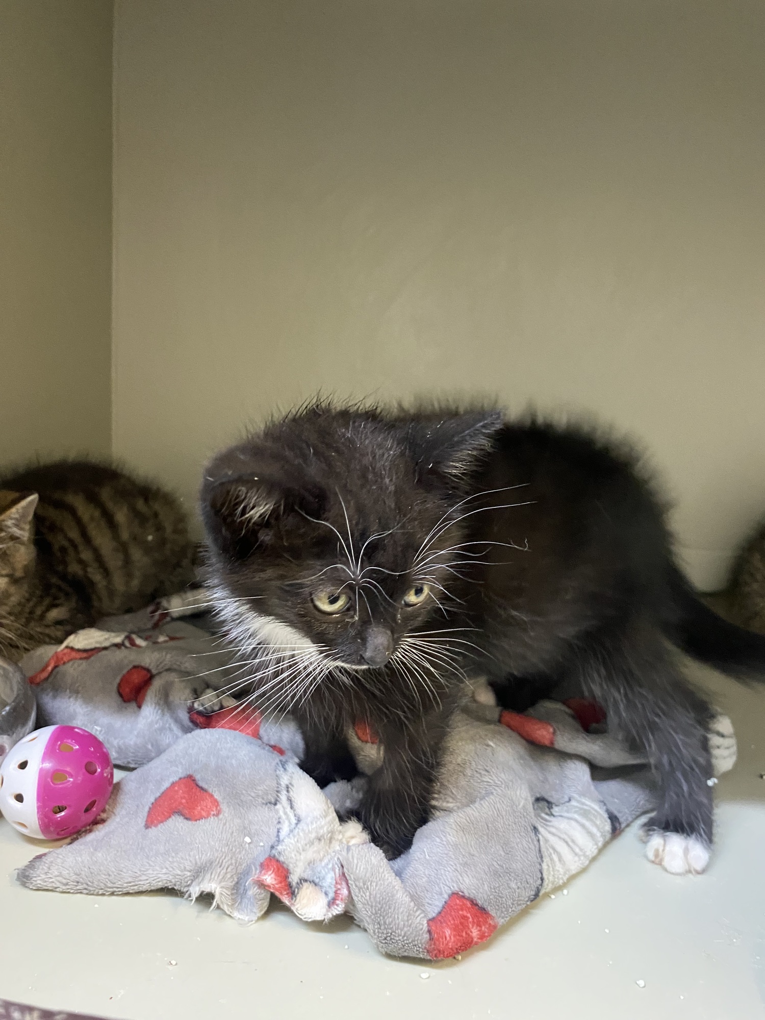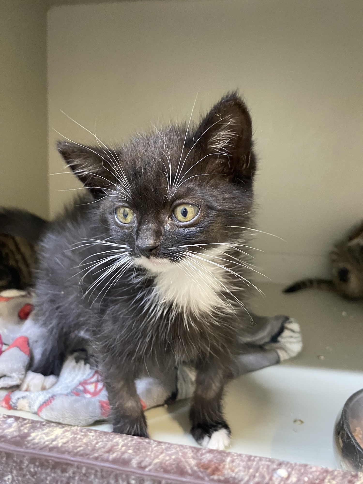 Maličký Eliot byl vyhozen se sourozenci v noci v krabici na zahradu nálezce, který zkontaktoval obec. Koťátka musela vyrůstat u lidí, protože jsou socializovaná. Bohužel se jich někdo nezodpovědně zbavil...