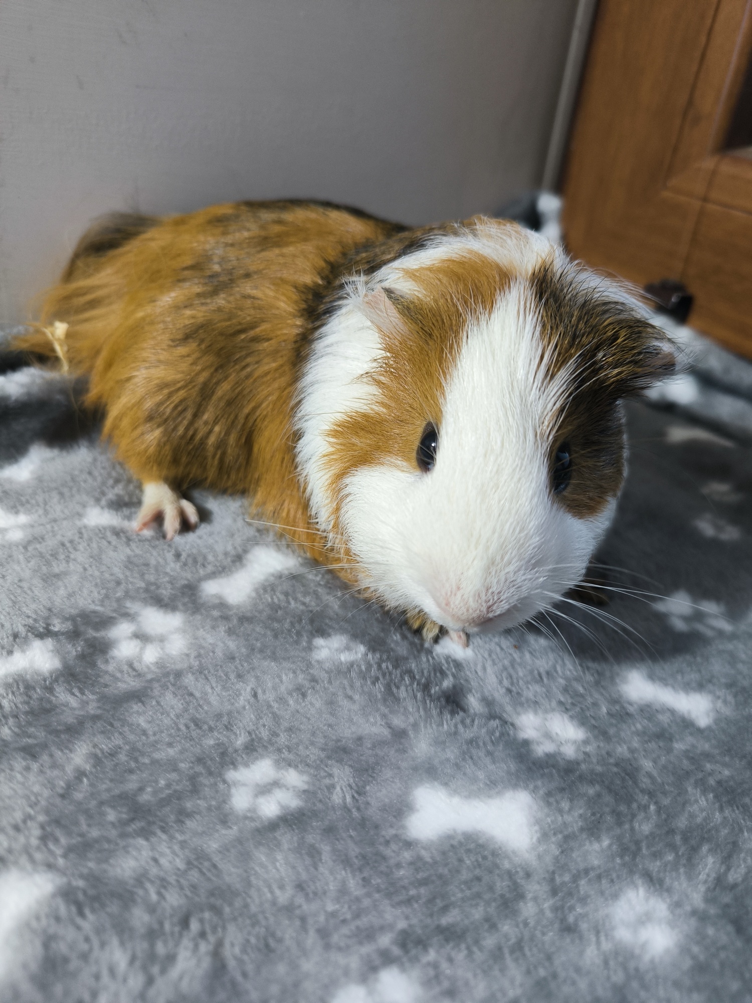Cupcake je krásný tříbarevný sameček, který je zvyklý v ubikaci se svým kámošem Muffinem. Společný domov by byl super, ale není podmínkou. Podmínkou je, aby šel k dalšímu parťákovi.