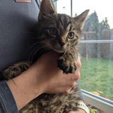 Marge je 3-4 měsíční kotě, které je zatím v karanténě a protože byla možná v kontaktu s FeLV kočkou, a byť testy na FeLV po příjmu vyšly...