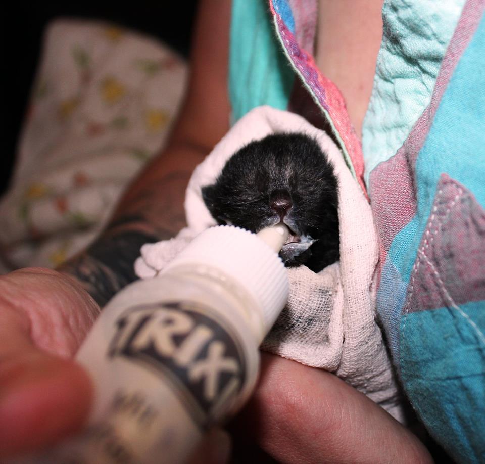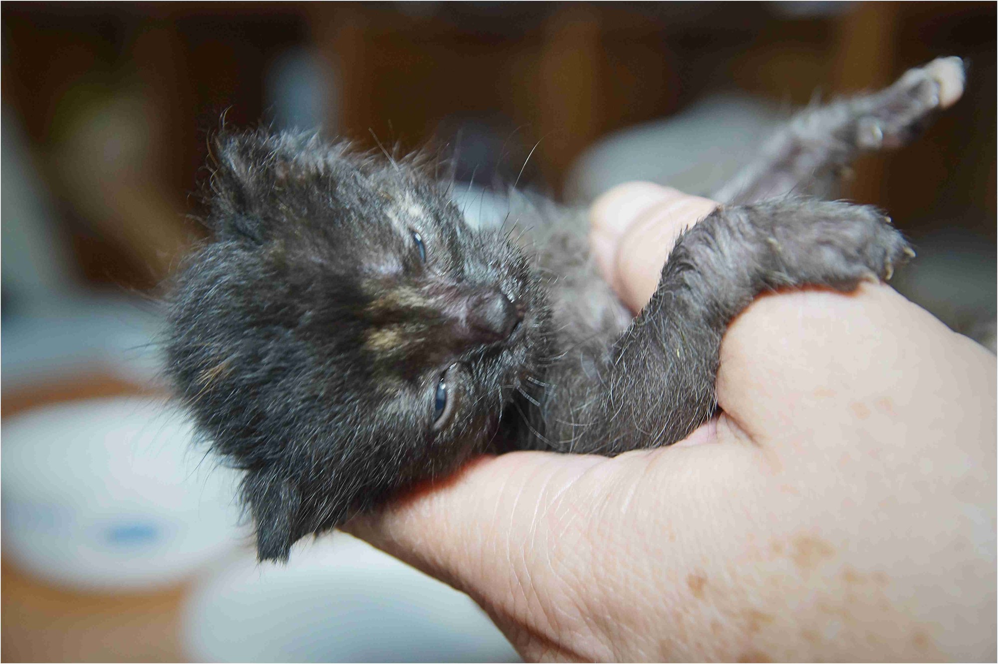 Deniska je další holka, která měla štěstí v neštěstí. Sice ji někdo hodil do kontejneru ještě s pupeční šňůrou, ale našly ji děti. Deny se dostala k nám do péče naší skvělé dočaskářky v důchodu, která ji krmí z lahve. Malá má však zánět pupečníku, byla apatická a měla průjem. Je proto na atb. Věříme, že zánět zvládne a bude z ní velká holka :) Zřejmě z ní vyroste kočena se želvovinovým zbarvením, podle flíčků na hlavičce.