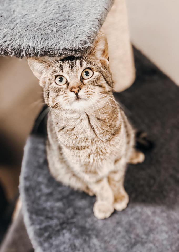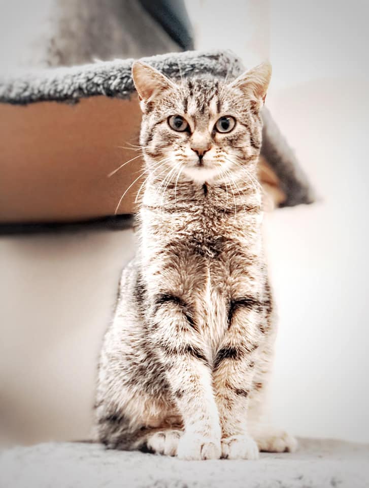 Charlottka je klasická krásná tygrovitá mourinka s uhrančivýma očima. Je to puberťačka, která se narodila v lokalitě, kde se množily kočky, a kde platíme kastrace. Zprvu je opatrná, ale poté si užívá mazlení, dobré zacházení a ňamky. Bude to vděčná společnice a mazlinka.
