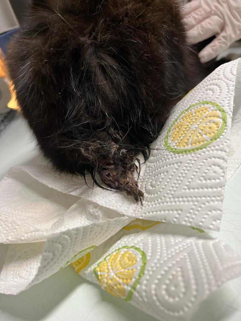 Janinka byla nalezena v Bělé pod Bezdězem s odumřelým a znekrotizovaným pahýlem po ocasu. Je to hodná a malá kočička, která váží 1,9 kg.