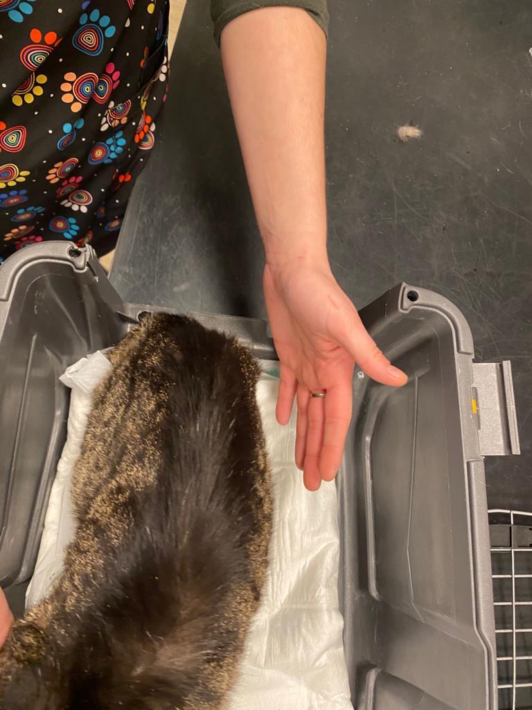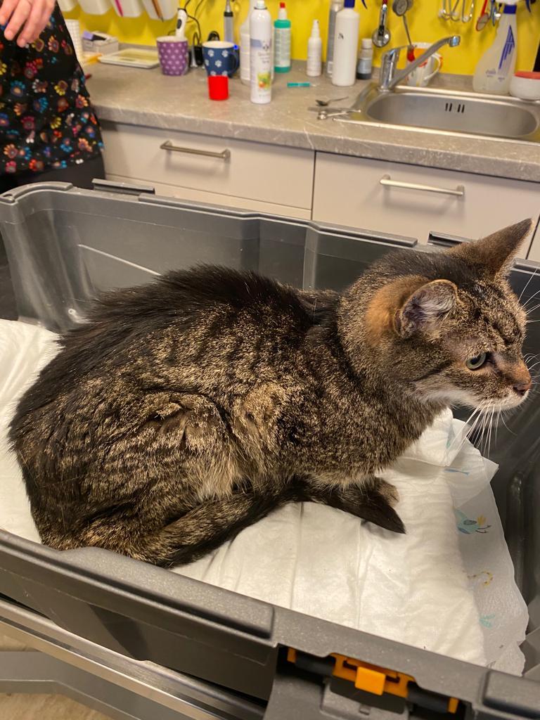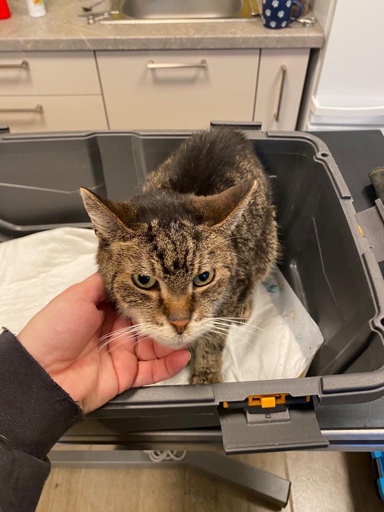 Tulík je starší hubený kocourek, taková opravdu kostřička potažená kůží s velikou hlavou. Je velmi kontaktní, rád se chová. Má jen jeden zub, potřebuje tedy kvalitní konzervy.