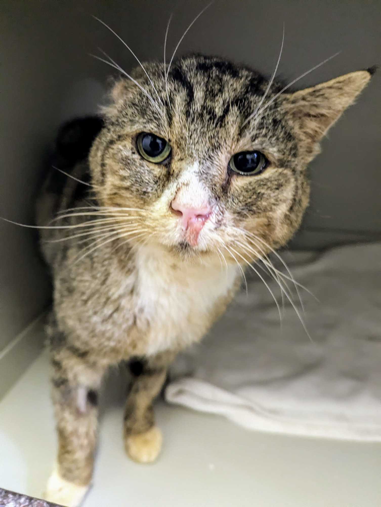 Vincek Van Gogh k nám přišel strhaný, v zuboženém stavu. Je podvyživený, chybí mu pravé ucho a má hroznou rýmu :( Co je však mnohem horší, je fakt, že má FIV. To je tzv. kočičí HIV. Zní to špatně, ale realita tak zlá není! Pokud jsou tyto kočičky jen domácí, mohou se dožít klidně opravdu vysokého věku. Jen je potřeba nebát se a dát jim šanci. Klidně si vzít do adopce dvě takové, protože s kočičkami negativními na FIV by žít neměly, aby se neriskoval přenos nemoci. Van Gogh je mírný kocourek, který je rád, že je po útrapách v teple. Bude vděčný za laskavý domov a šanci na život.
