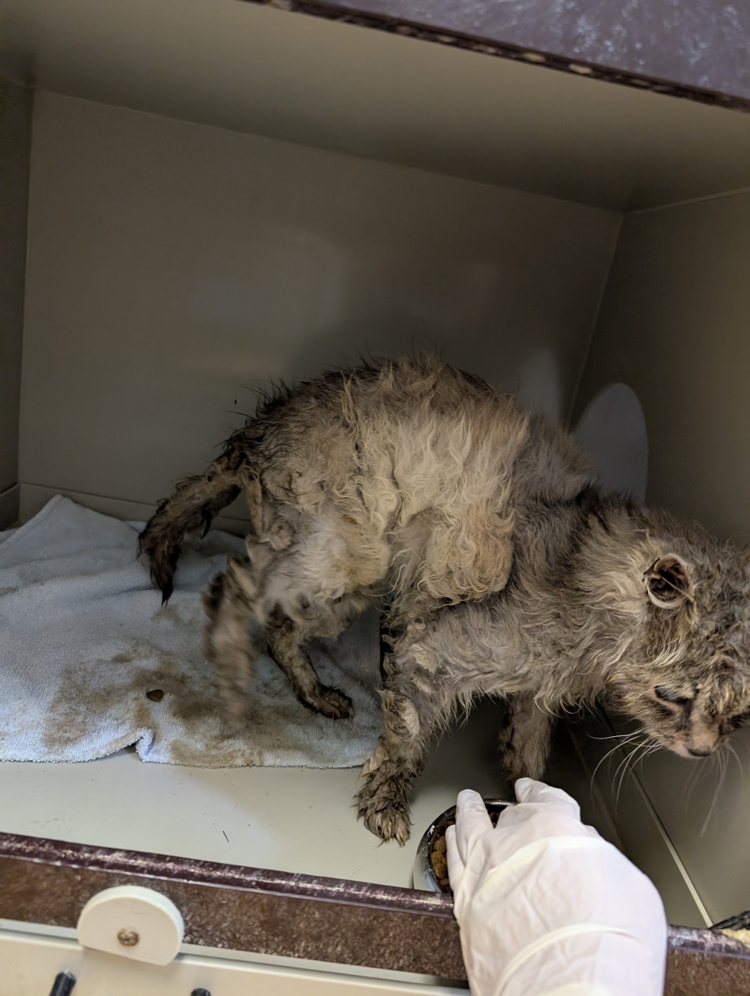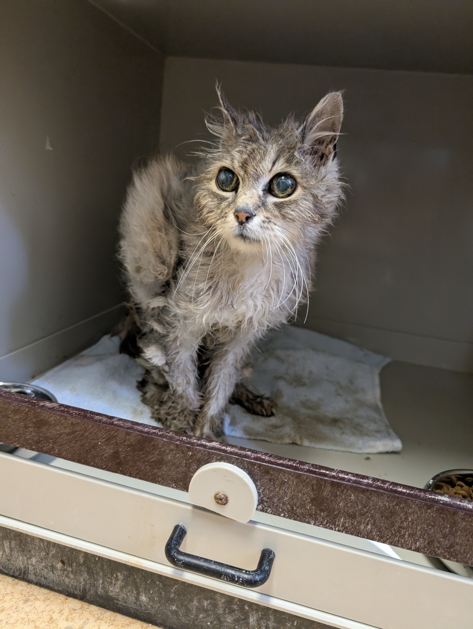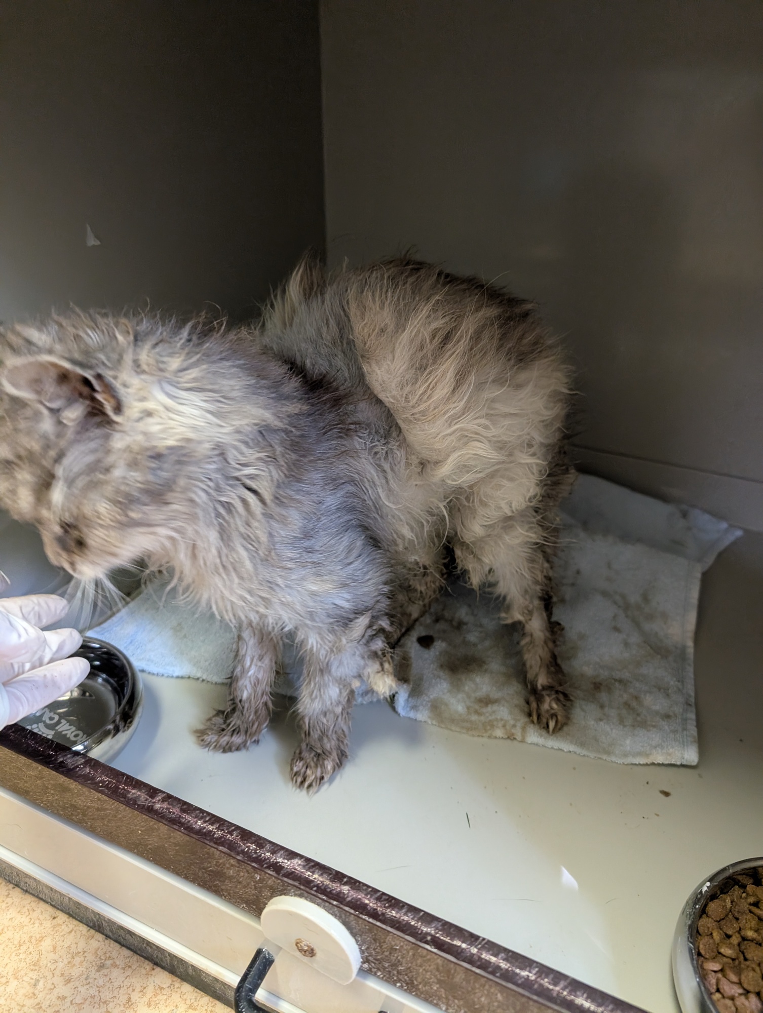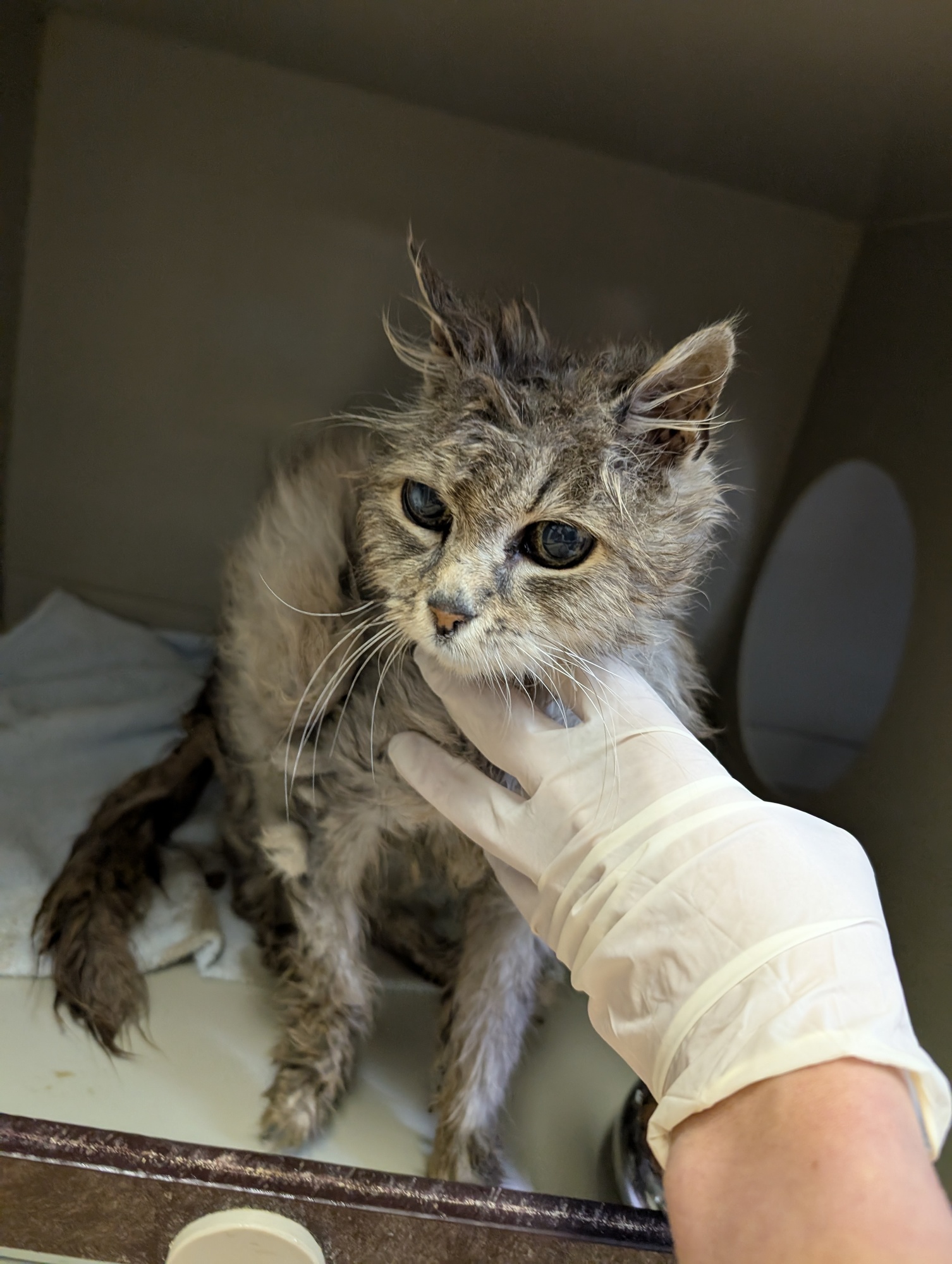 Šedulka se našla v katastrofálním stavu. Zubožená, vychrtlá, smradlavá kočička s dredy plnými výkalů a moči. Přitom kdysi dávno to byla jistě nádherná dlouhosrstá a zřejmě milovaná kočička. Je totiž evidentní, že kdysi někomu patřila. Je mazlivá, ale když se jí něco nelíbí, umí dát najevo, že takhle tedy ne :) Bohužel špatně jí vyšly výsledky ledvin. Rozhodli jsme se však jí poskytnout péči a lásku po dobu, která jí zbývá. Byla by škoda uspat tak milou kočičku. Šedulce můžete pomoci přes Donio.cz s veterinárními náklady. Jsme vděčni za jakoukoliv pomoc pro ni.