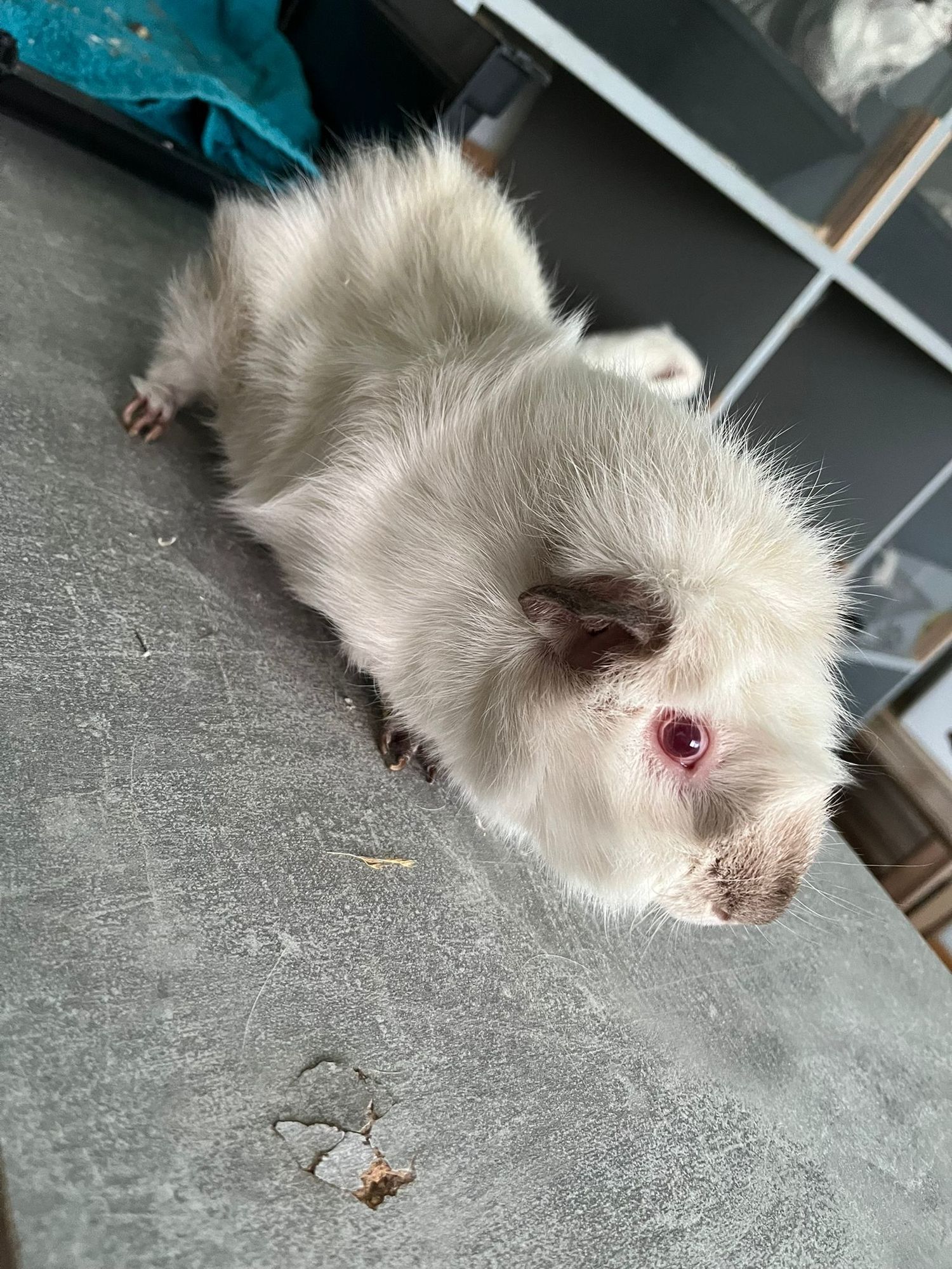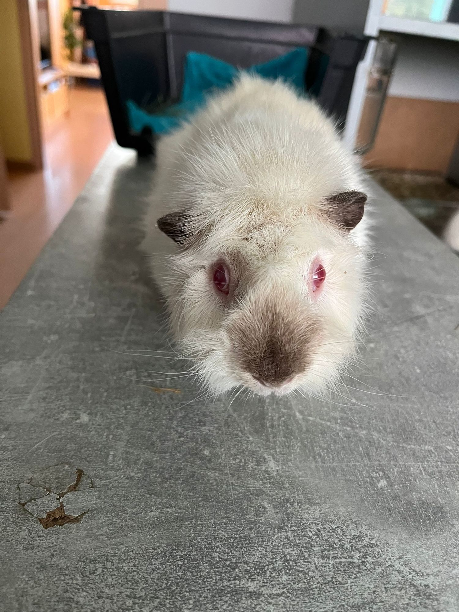 Snow se nechá pohladit a pochovat, ale je bázlivější povahy. Snow je kastrovaný a po zotavení může do nového domova dělat společnost samičkám .