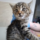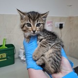Koťátko, které se našlo i se sourozenci, bez maminky. Nálezkyně zavolala strážníky a ti jej odvezli k nám. Grace je ještě hodně malinká, ale už krásně jí konzervy a granule. Je...